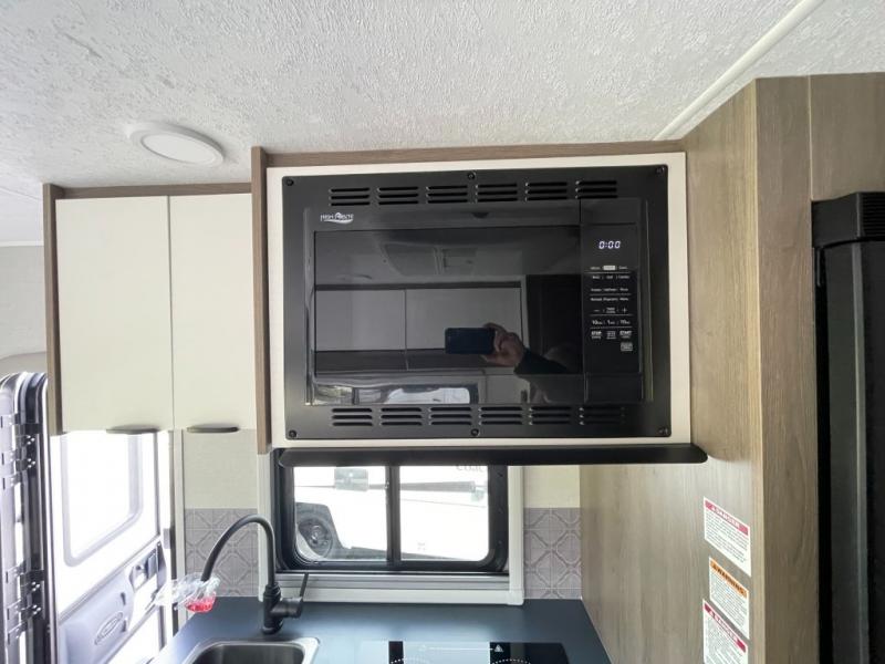 When you enjoy relaxing indoors this coach offers two areas; the rear corner with a double-size Murphy bed, and a J-lounge behind the driver's seat that includes an 18" extension. In the morning, you can prepare eggs and bacon on the two burner induction cooktop, or make instant oatmeal in the microwave oven. The 14' power awning will provide much wanted shade during the day when relaxing outdoors, and the rear corner full bath will allow you to clean up just like you would at home.