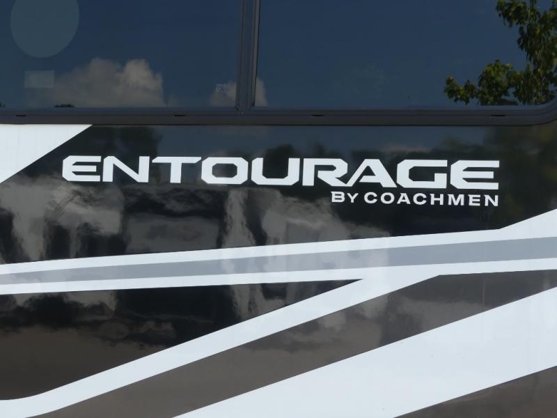 The Entourage is Coachmen's first super C diesel motorhome and it is packed with upscale appointments and solid construction so you can enjoy the RV lifestyle for years to come. This coach features a 4x4 diesel chassis (either a Chevy Silverado 5500 with a V8 6.6L diesel engine, or International CV chassis, depending on the model you choose), plus 50 amp service and a 2,000 watt inverter for all your power needs. The mandatory Icon Package includes a porcelain macerator toilet, auto generator start with dual batteries, 50 amp service, a tankless water heater, and more!