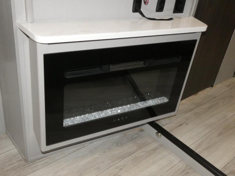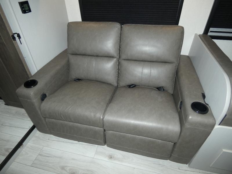 If you're looking for a coach with more sleeping space so your whole crew can join, take a look at this Entourage! You will have your own rear private bedroom with a power inclining king bed slide out, a dresser, plus wardrobe that is washer and dryer ready. Your guests can sleep on the sofa, booth dinette, set of bunk beds, or cab-over bunk, and the full bath is close by for easy use. The kitchen is fully equipped with an induction cooktop, a residential convection microwave, and a 10 cu. ft. 12V double door refrigerator for food storage. You will enjoy your time outdoors as well since there is an outside entertainment center and an outside kitchen!