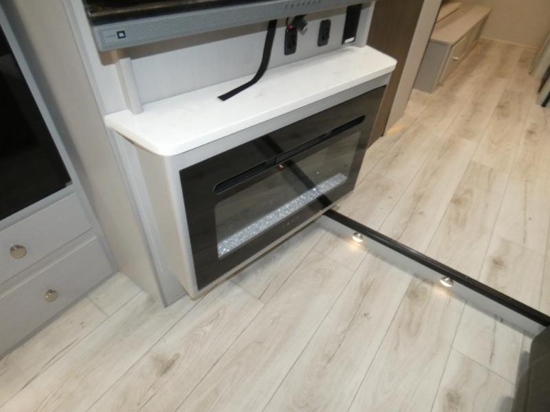 If you're looking for a coach with more sleeping space so your whole crew can join, take a look at this Entourage! You will have your own rear private bedroom with a power inclining king bed slide out, a dresser, plus wardrobe that is washer and dryer ready. Your guests can sleep on the booth dinette, set of bunk beds, or cab-over bunk, and the full bath is close by for easy use. The kitchen is fully equipped with an induction cooktop, a residential convection microwave, and a 10 cu. ft. 12V double door refrigerator for food storage. You will enjoy your time outdoors as well since there is an outside entertainment center and an outside kitchen!