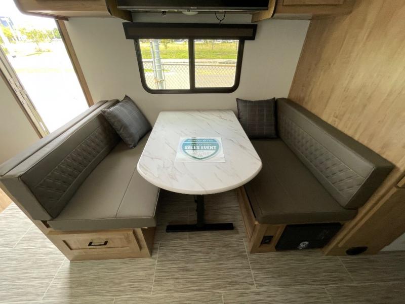 With any Freedom Express Ultra Lite travel trailer by Coachmen you will appreciate quality construction materials, such as vacuum bonded walls with Azdel composite, a 3/4 gel coated fiberglass cap with an automotive glass windshield, and a heated enclosed underbelly. Each model also features Tufflex PVC roofing, front rock guard, and E-Z Lube axles for smooth towing. Inside, you'll find kitchen backsplash, hidden hinge cabinetry, and wear-resistant vinyl flooring throughout. The power tongue jack included with the Ultra Lite Express Package will make set-up a breeze, and each model includes back-up camera prep and they are Freedom solar ready if you plan to go off-grid. Enjoy lightweight camping with a Freedom Express Ultra Lite travel trailer today!