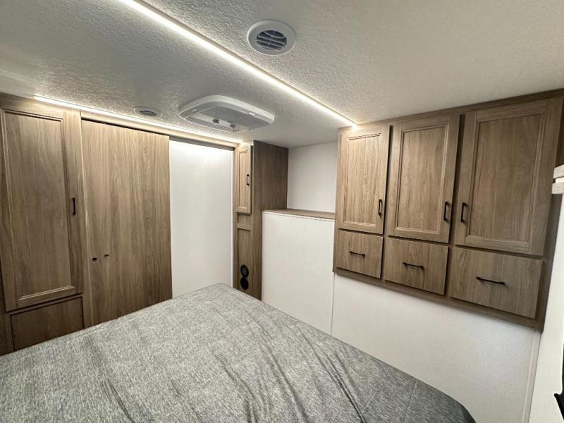 Rear Master Bedroom — With a king-size bed slide-out, wardrobe, and private access to part of the dual-entry bath.