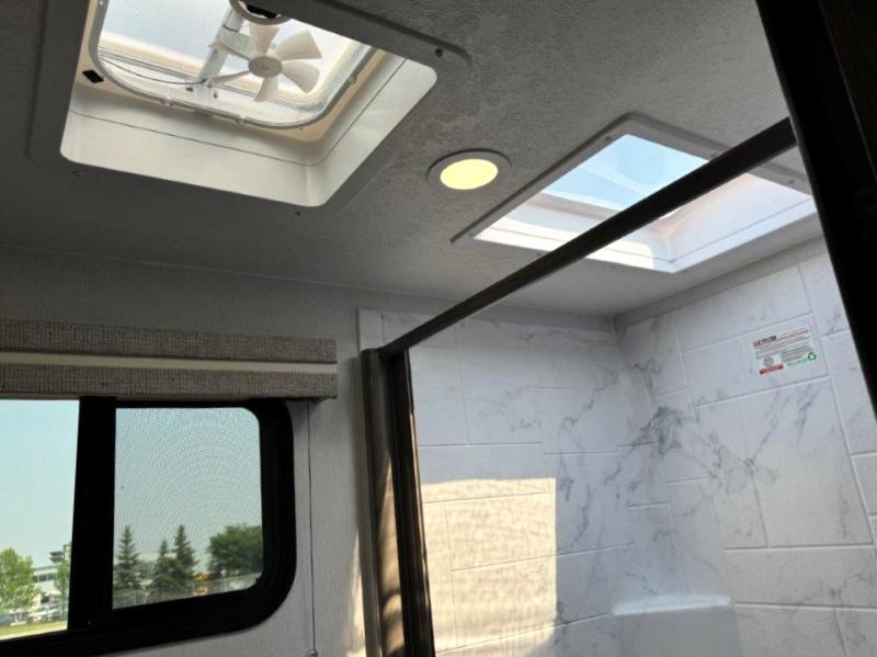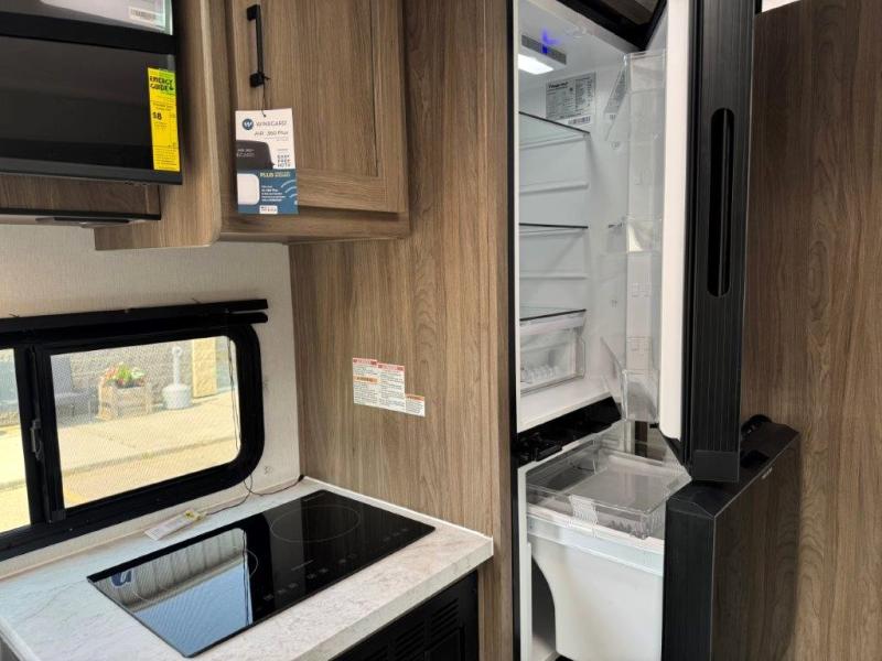 With any Freedom Express Select travel trailer by Coachmen you will find an alumicage construction and vacuum bonded walls with Azdel composite for a trailer made to last. These Select value models come standard with a Bluetooth interior speaker, night shades, and wear-resistant vinyl flooring throughout. You will appreciate the power tongue jack, as well as the Tufflex PVC roof and heated and enclosed underbelly to extend your camping season. A 15K BTU roof A/C will keep you comfortable, and the tankless water heater will provide endless hot showers!
