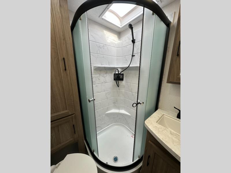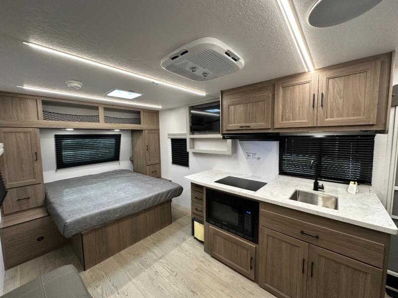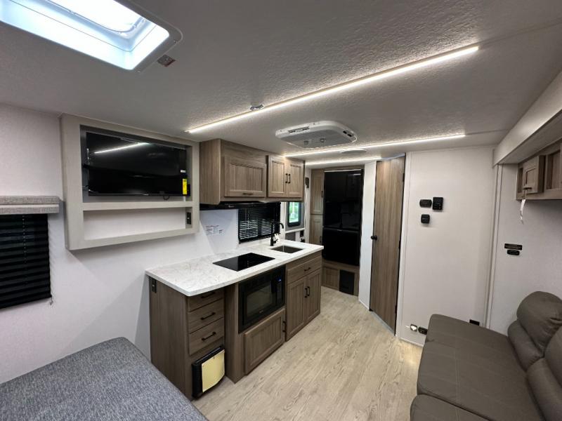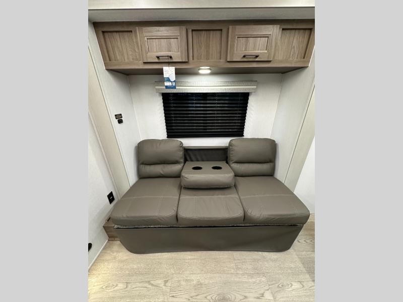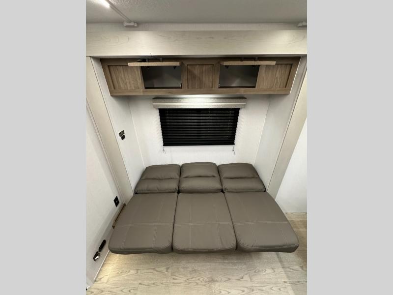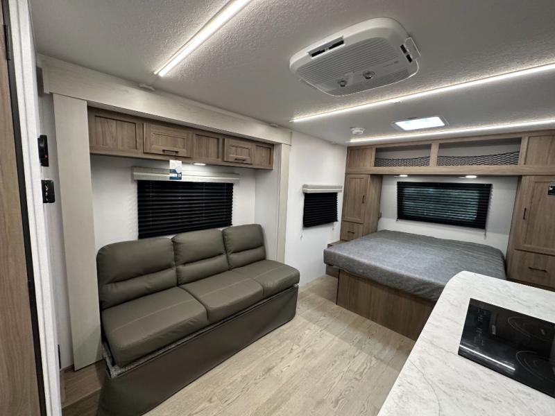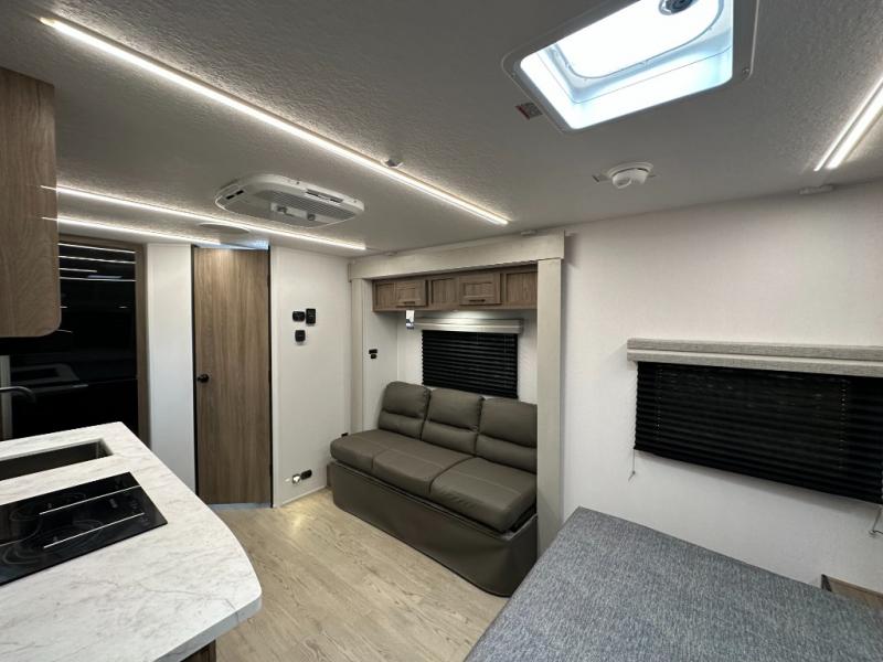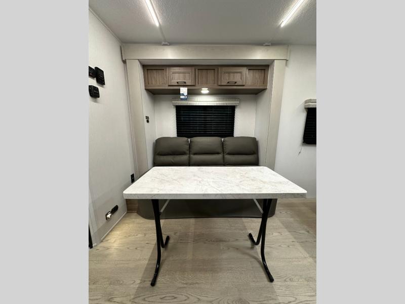 Utilities / Comforts: 15,000 BTU roof air conditioner; tankless water heater; full walk-on roof; heated & enclosed underbelly; power tongue jack; power awning with LED lights.