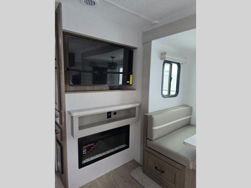 With any Freedom Express Select travel trailer by Coachmen you will find an alumicage construction and vacuum bonded walls with Azdel composite for a trailer made to last. These Select value models come standard with a Bluetooth interior speaker, night shades, and wear-resistant vinyl flooring throughout. You will appreciate the power tongue jack, as well as the Tufflex PVC roof and heated and enclosed underbelly to extend your camping season. A 15K BTU roof A/C will keep you comfortable, and the tankless water heater will provide endless hot showers!