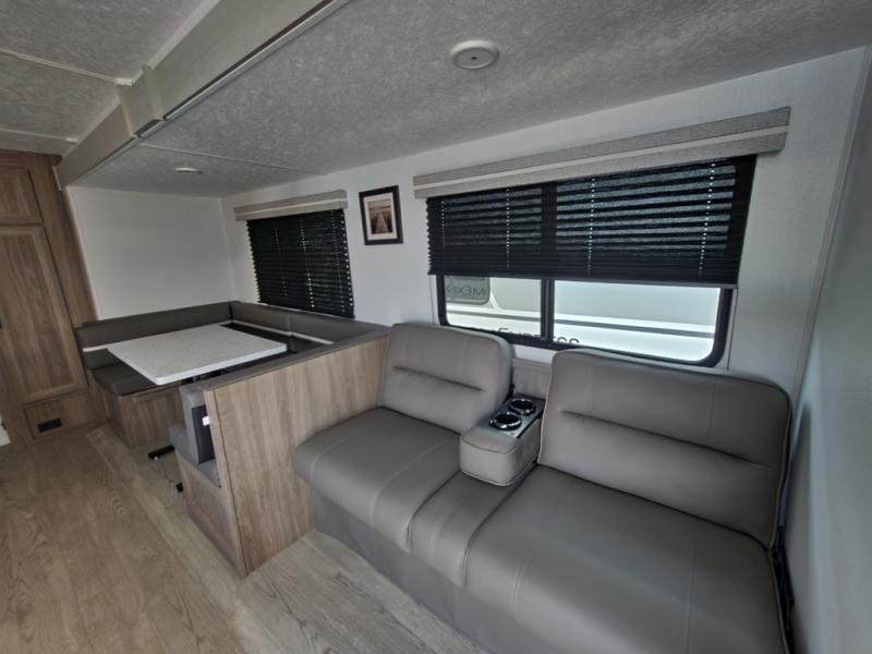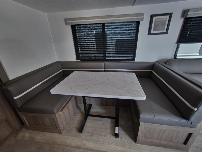 - Living Area: Spacious living area with a fold-down sofa and a U-shaped dinette that converts to a bed.