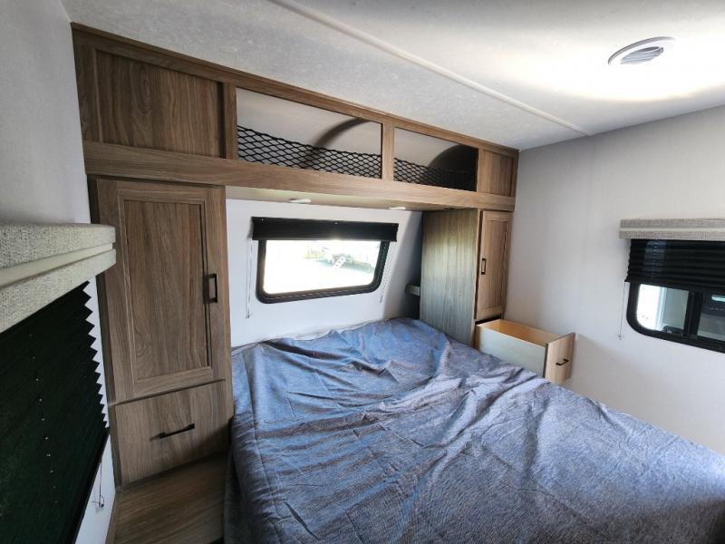 - Master Bedroom: Queen-size bed with a 60" x 80" mattress, overhead storage, and privacy curtains.