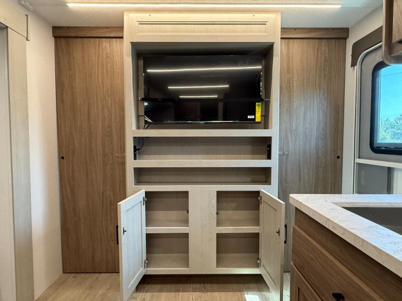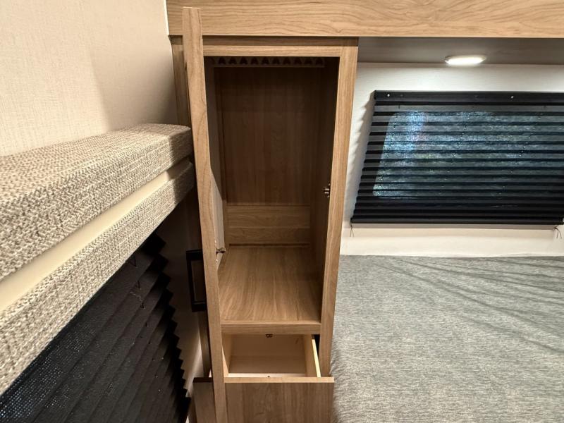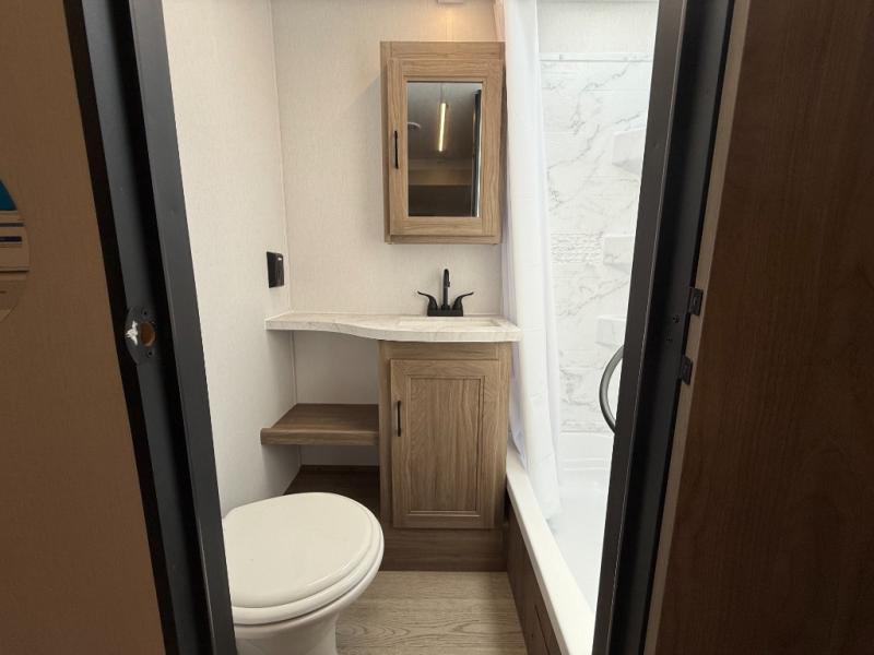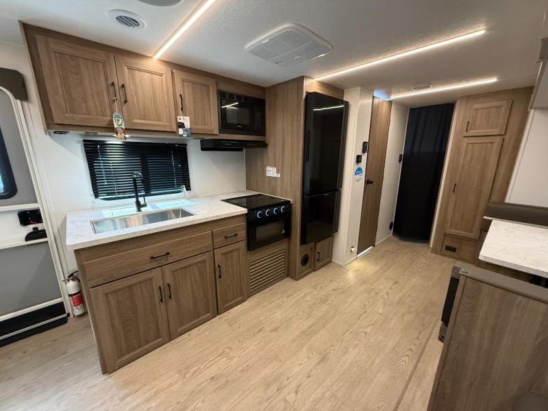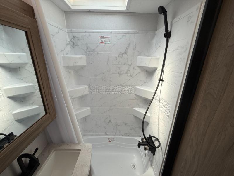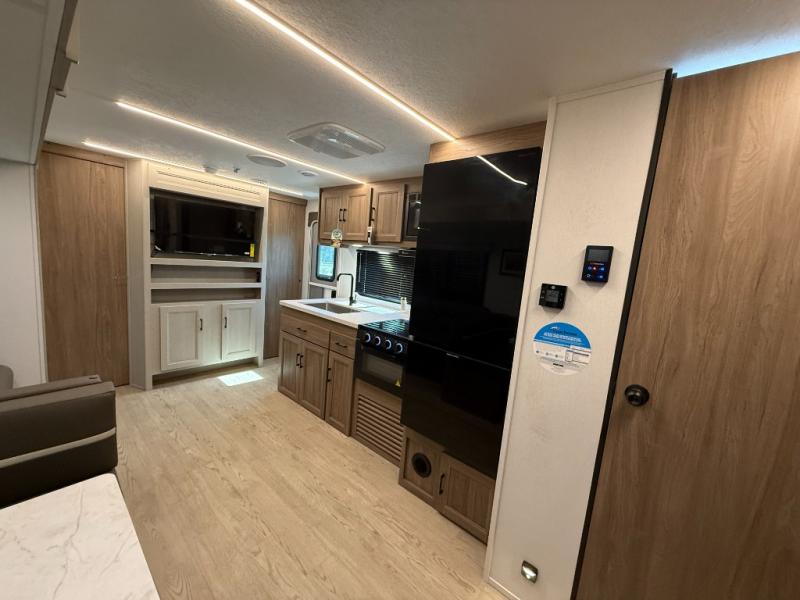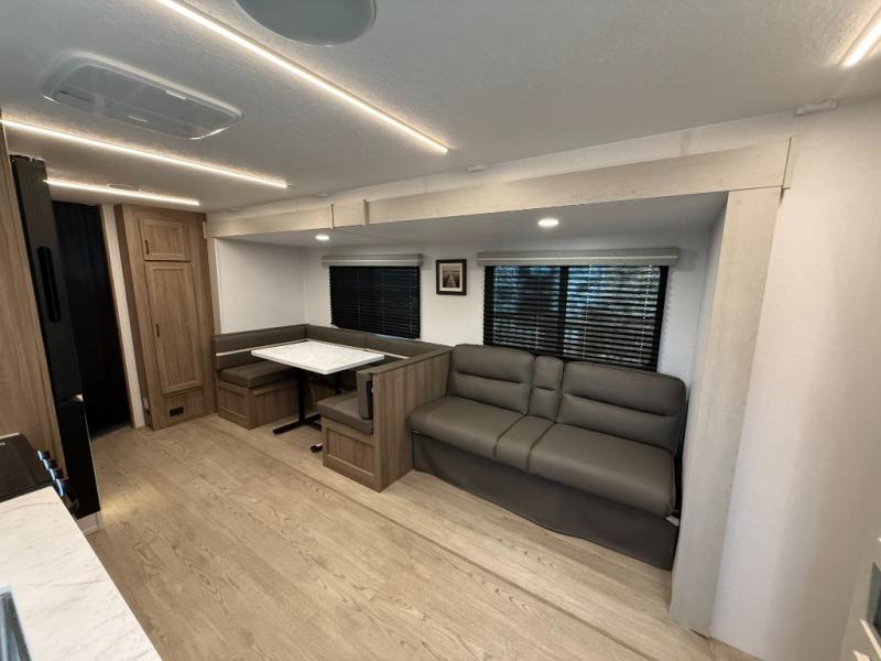Climate / Comfort: 15,000 BTU roof air conditioner; tankless water heater; heated and enclosed underbelly; power awning with LED lights. Interior height - 81 in gives good headroom.
