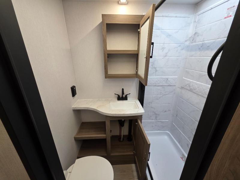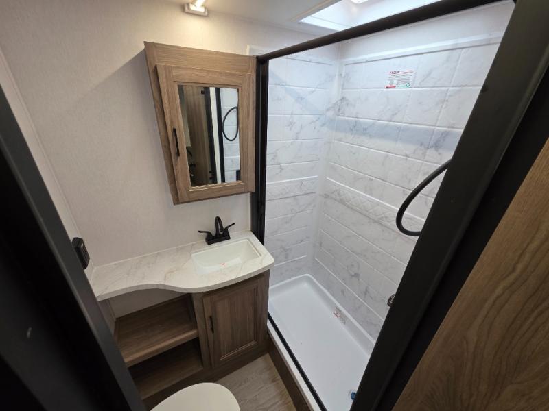 With any Freedom Express Select travel trailer by Coachmen you will find an alumicage construction and vacuum bonded walls with Azdel composite for a trailer made to last. These Select value models come standard with a Bluetooth interior speaker, night shades, and wear-resistant vinyl flooring throughout. You will appreciate the power tongue jack, as well as the Tufflex PVC roof and heated and enclosed underbelly to help with protection and climate control. A 15K BTU roof A/C will keep you comfortable, and the tankless water heater will provide endless hot showers!