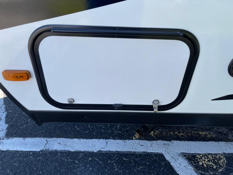 This is the perfect couple's trailer to take to the lake every other weekend. You will enjoy your own queen bed up front that includes vaulted under-bed storage for your luggage. The sofa slide out with a free-standing table provides a place to relax and dine together, and if you have an overnight guest, they can sleep here. The chef can prepare meals on the three burner cooktop or in the microwave oven, and there is a stainless steel sink for easy clean up. This model also includes a full bath with a linen closet for clean towels, and a 32" radius shower with a skylight for more standing space.