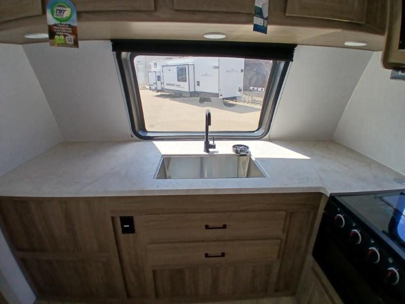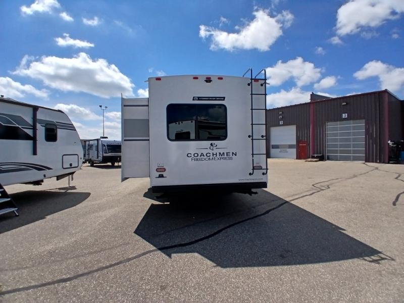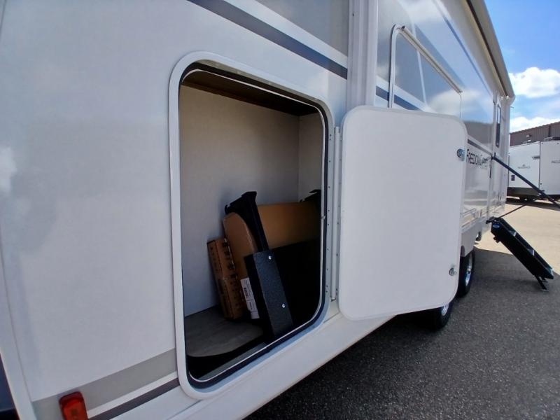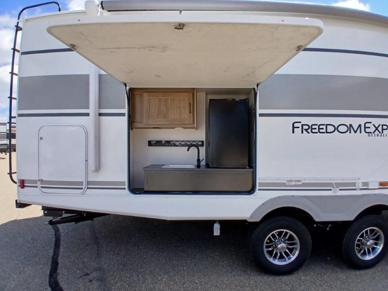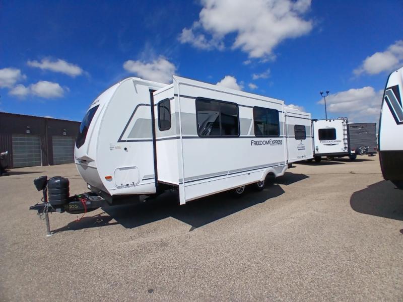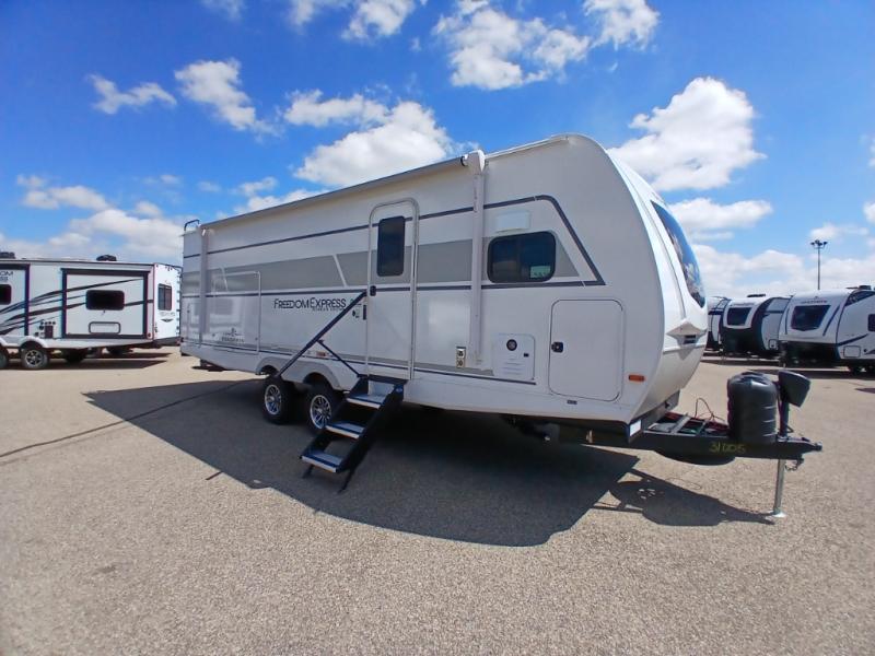 With any Freedom Express Ultra Lite travel trailer by Coachmen you will appreciate quality construction materials, such as vacuum bonded walls with Azdel composite, a 3/4 gel coated fiberglass cap with an automotive glass windshield, and a heated enclosed underbelly. Each model also features Tufflex PVC roofing, front rock guard, and E-Z Lube axles for smooth towing. Inside, you'll find kitchen backsplash, hidden hinge cabinetry, and wear-resistant vinyl flooring throughout. The power tongue jack included with the Ultra Lite Express Package will make set-up a breeze, and each model includes back-up camera prep and they are Freedom solar ready if you plan to go off-grid. Enjoy lightweight camping with a Freedom Express Ultra Lite travel trailer today!