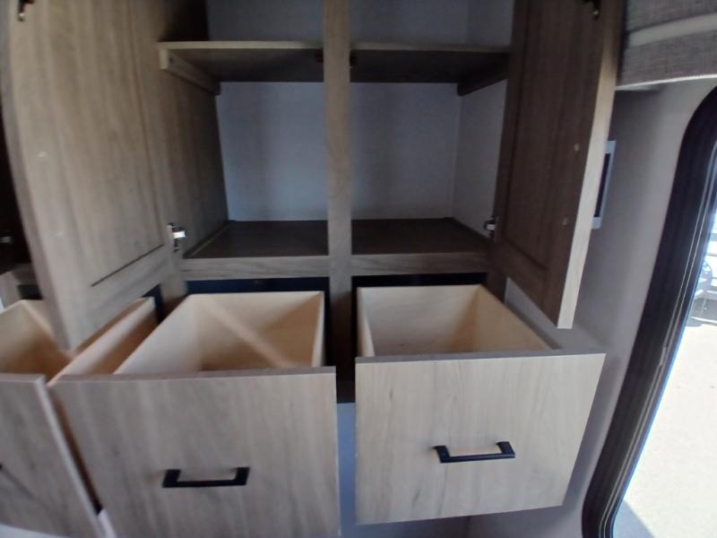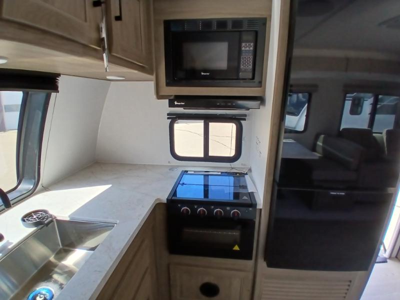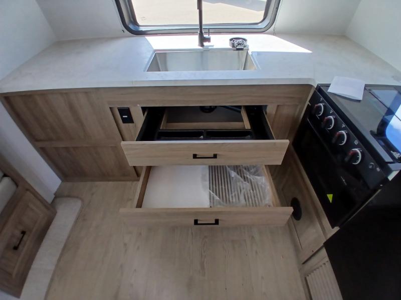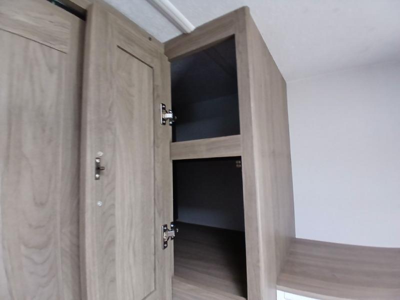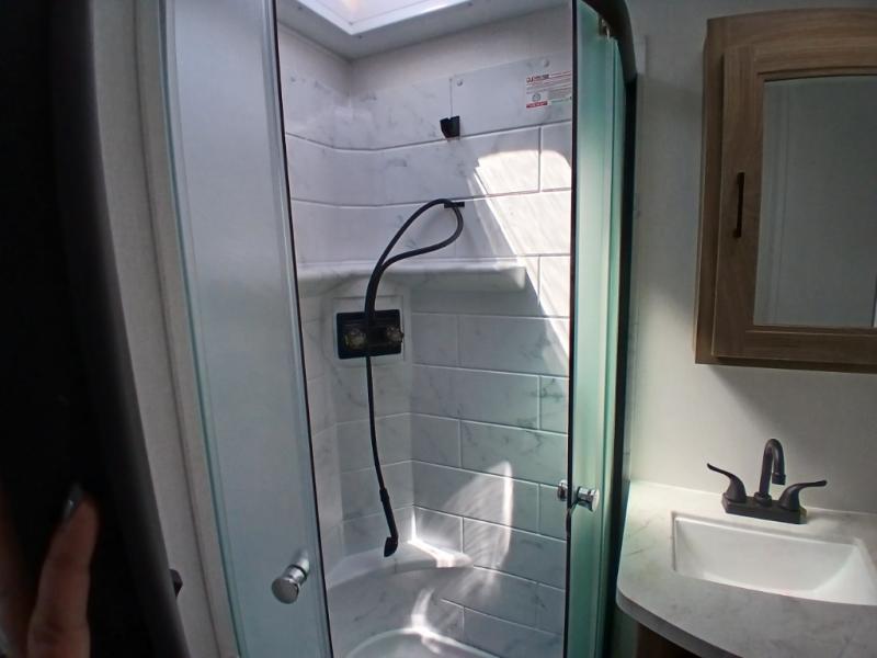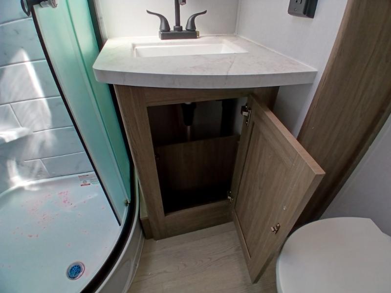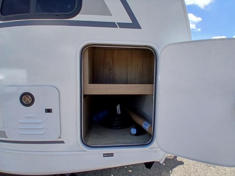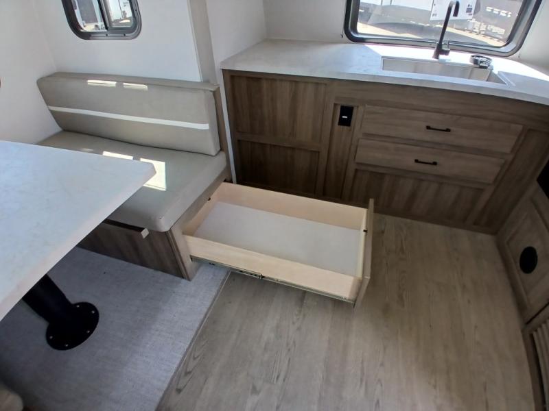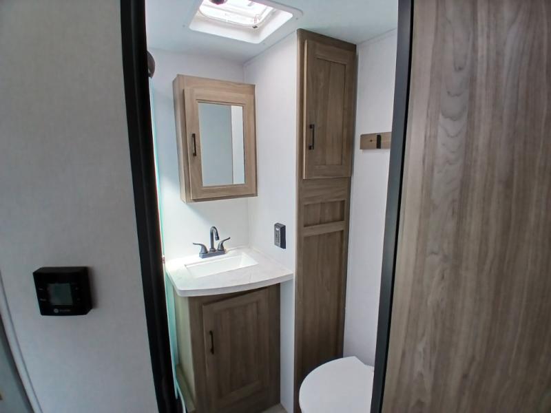 Comfort comes easy in this front kitchen travel trailer for four! You will love the rear master bedroom with its king bed slide out, spacious wardrobe, and a private entrance into the dual entry bath. There is a sofa that sits directly across from the fireplace and entertainment center, or you can choose the optional theater seat or optional hide-a-bed sofa in place of the standard sofa. The front kitchen features tons of counter space, an 8 cu. ft. double door refrigerator, plus a large pantry for dry good and snacks. There is also a pantry/closet just as you enter the trailer that will be perfect for shoes and jackets!
