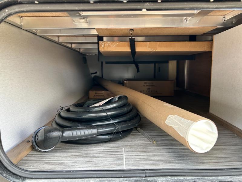 Are you looking for a travel trailer that will feel more like home? Look no further than this model that features a private bedroom up front, a full bath, plus a spacious rear kitchen. You will love to relax on the theatre sofa/hide-a-bed sofa across from the Smart TV and fireplace, and there is a booth dinette for dining. This model also includes a hidden pantry behind the TV for smart storage solutions. If the weather is nice you may just want to sit outdoors under the 18' power awning with LED lights. The chef of your group can prepare a meal on the pull-out camp kitchen, and the kids can grab their scooters from the pass-through storage.