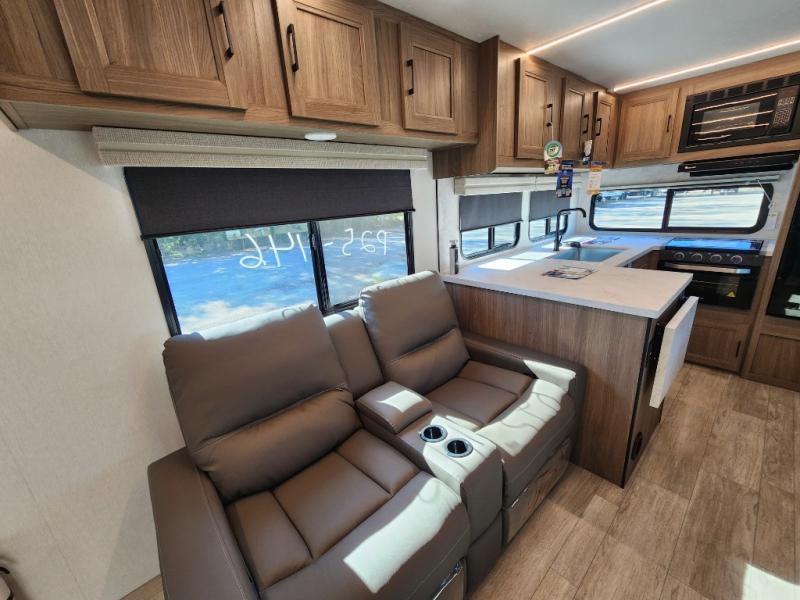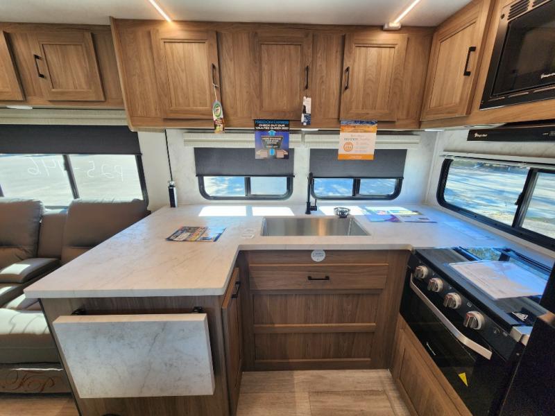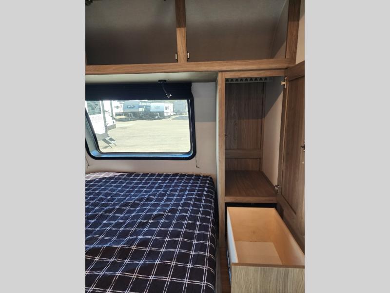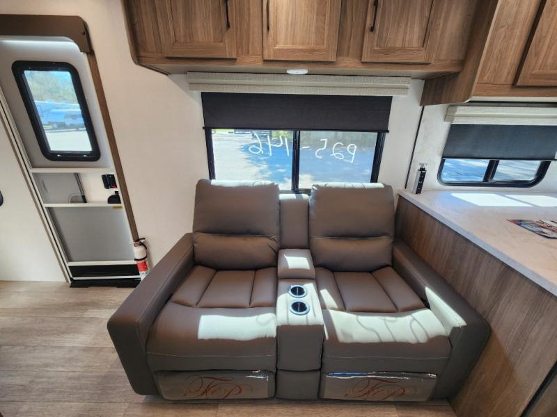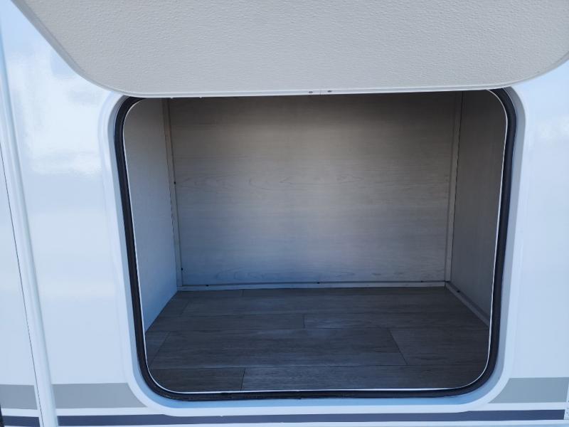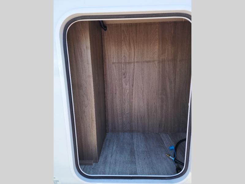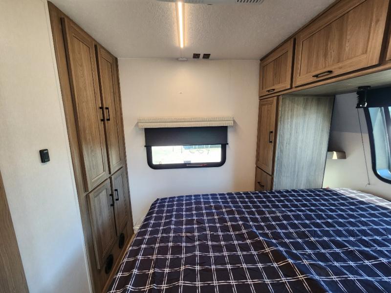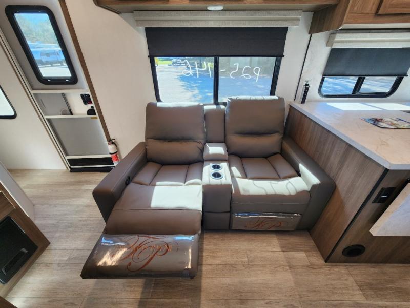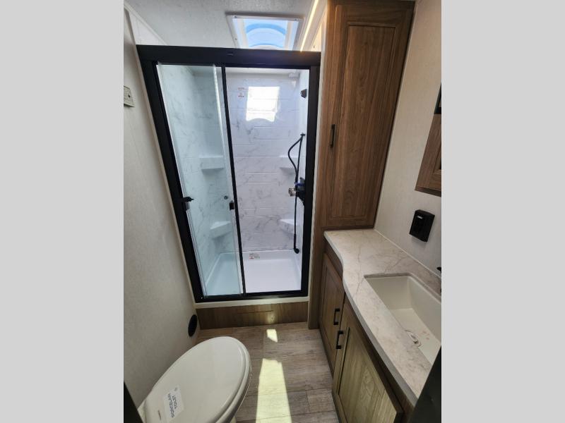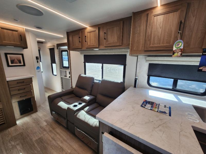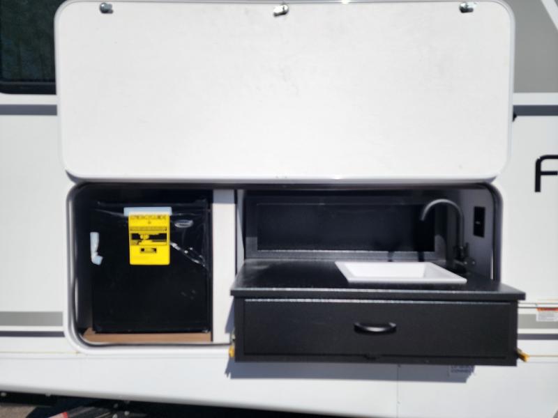 Are you looking for a travel trailer that will feel more like home? Look no further than this model that features a private bedroom up front, a full bath, plus a spacious rear kitchen. You will love to relax on the theatre sofa/hide-a-bed sofa across from the Smart TV and fireplace, and there is a booth dinette for dining. This model also includes a hidden pantry behind the TV for smart storage solutions. If the weather is nice you may just want to sit outdoors under the 18' power awning with LED lights. The chef of your group can prepare a meal on the pull-out camp kitchen, and the kids can grab their scooters from the pass-through storage.
