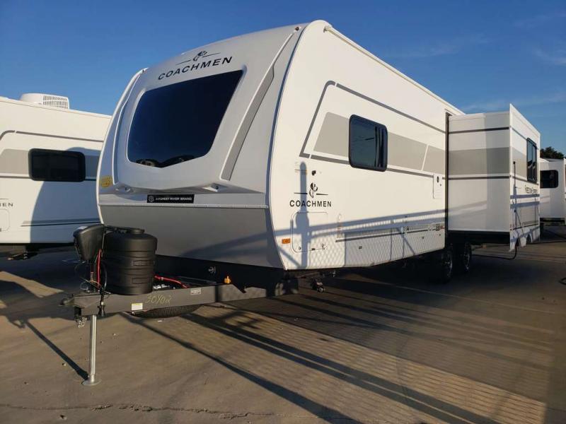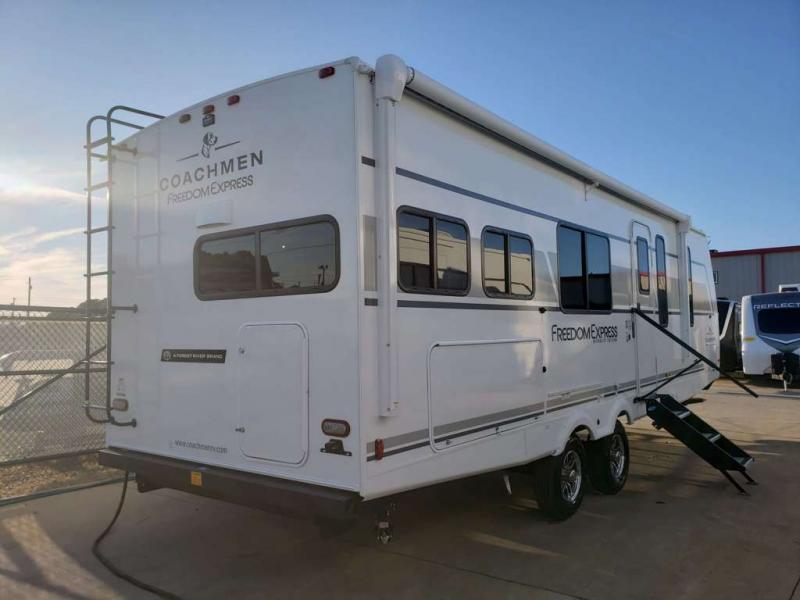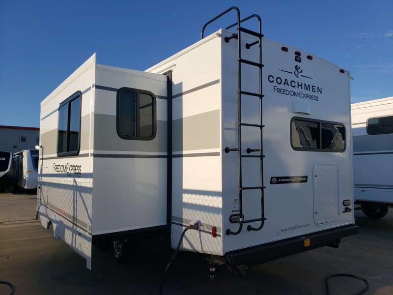 With any Freedom Express Ultra Lite travel trailer by Coachmen you will appreciate quality construction materials, such as vacuum bonded walls with Azdel composite, a 3/4 gel coated fiberglass cap with an automotive glass windshield, and a heated enclosed underbelly. Each model also features Tufflex PVC roofing, front rock guard, and E-Z Lube axles for smooth towing. Inside, you'll find kitchen backsplash, hidden hinge cabinetry, and wear-resistant vinyl flooring throughout. The power tongue jack included with the Ultra Lite Express Package will make set-up a breeze, and each model includes back-up camera prep and they are Freedom solar ready if you plan to go off-grid. Enjoy lightweight camping with a Freedom Express Ultra Lite travel trailer today!