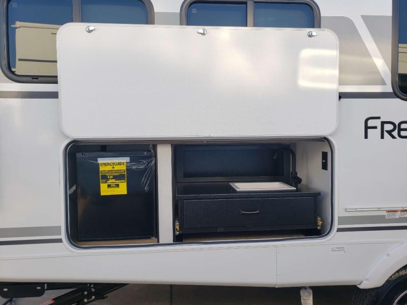 With any Freedom Express Ultra Lite travel trailer by Coachmen you will appreciate quality construction materials, such as vacuum bonded walls with Azdel composite, a 3/4 gel coated fiberglass cap with an automotive glass windshield, and a heated enclosed underbelly. Each model also features Tufflex PVC roofing, front rock guard, and E-Z Lube axles for smooth towing. Inside, you'll find kitchen backsplash, hidden hinge cabinetry, and wear-resistant vinyl flooring throughout. The power tongue jack included with the Ultra Lite Express Package will make set-up a breeze, and each model includes back-up camera prep and they are Freedom solar ready if you plan to go off-grid. Enjoy lightweight camping with a Freedom Express Ultra Lite travel trailer today!
