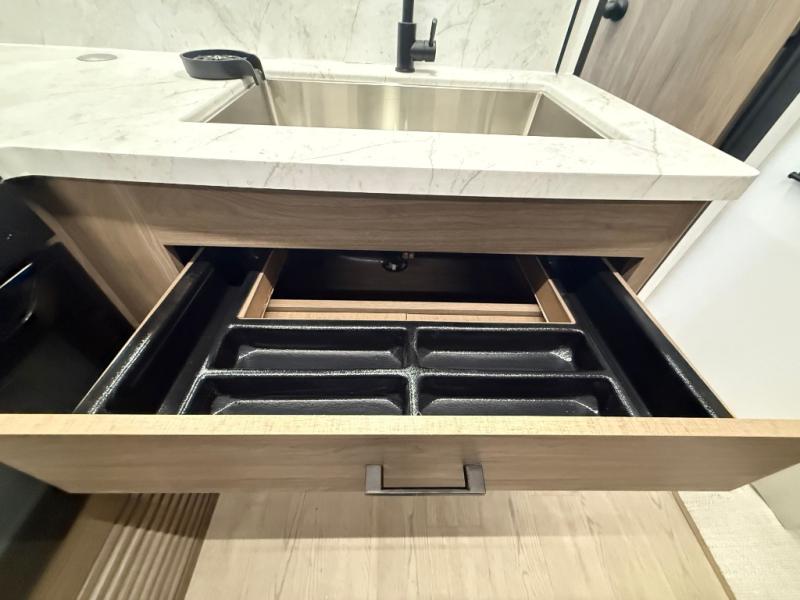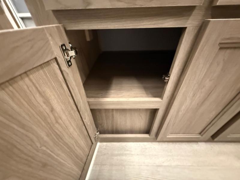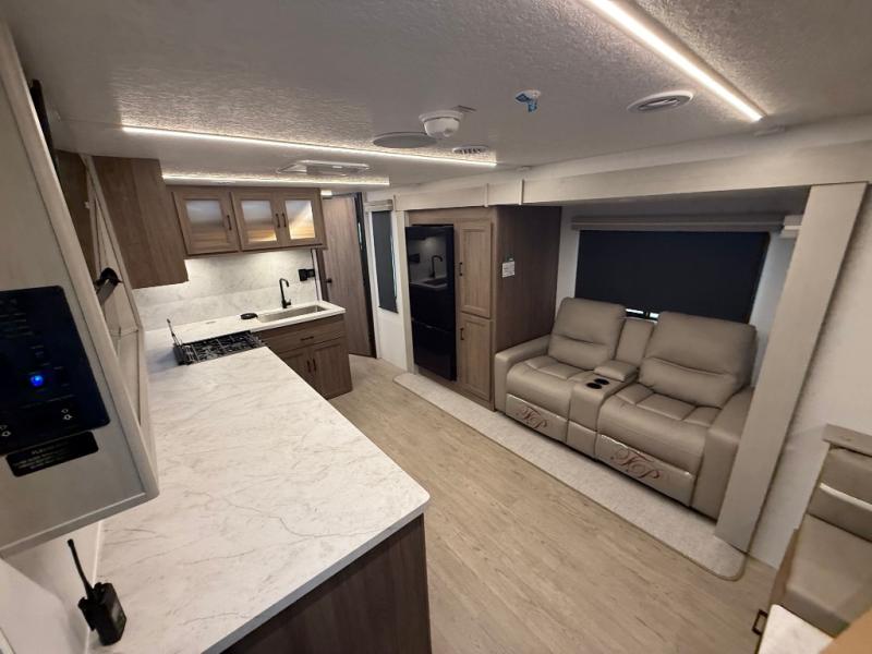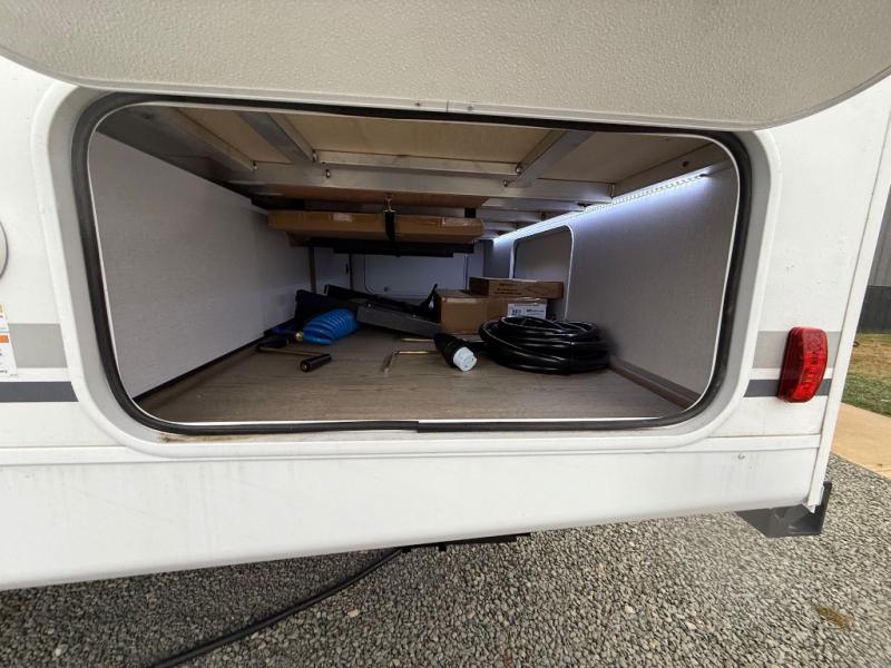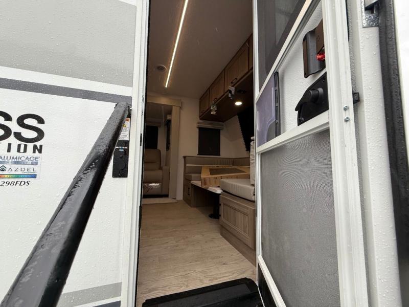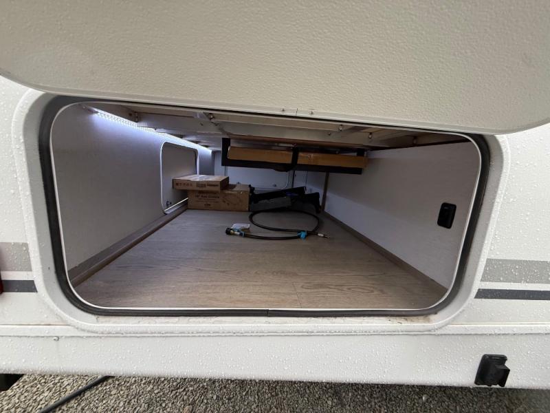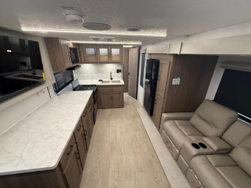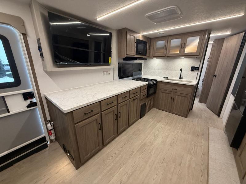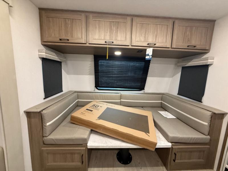 Looking for plenty of storage space in a towable? This Freedom Express Ultra Lite offers you a plenty of it, both inside and out. You will appreciate the spacious combined kitchen and living area featuring a large slide opposite the entry door. Here is where you will enjoy theater seating and your refrigerator and storage. The very front houses a huge 8' U-dinette for meals and game time, and can also serve as extra sleeping space once converted. Opposite the slide above the huge counter with plenty of storage beneath, a flat screen Smart TV. Beyond the kitchen area a spacious walk-through bath that offers space just like at home. There is even a wardrobe that has been prepped for a washer and dryer if you choose to add. A sliding door leads into the rear private master bedroom featuring a queen bed with dual bedside wardrobes and inset bedside shelves, vaulted underbed storage for your things.