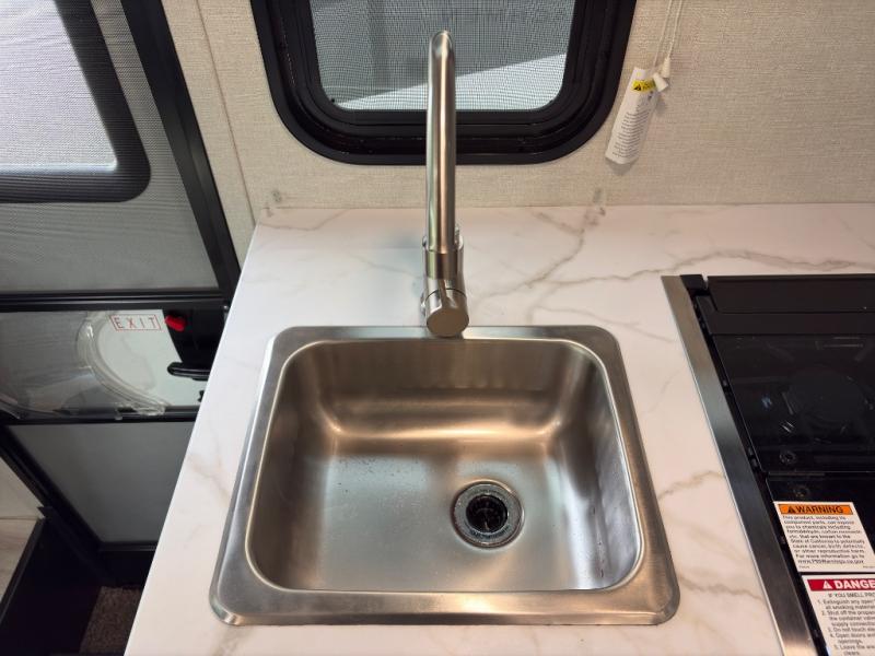 Deep stainless-steel sink with high-rise faucet for easy cleanup.