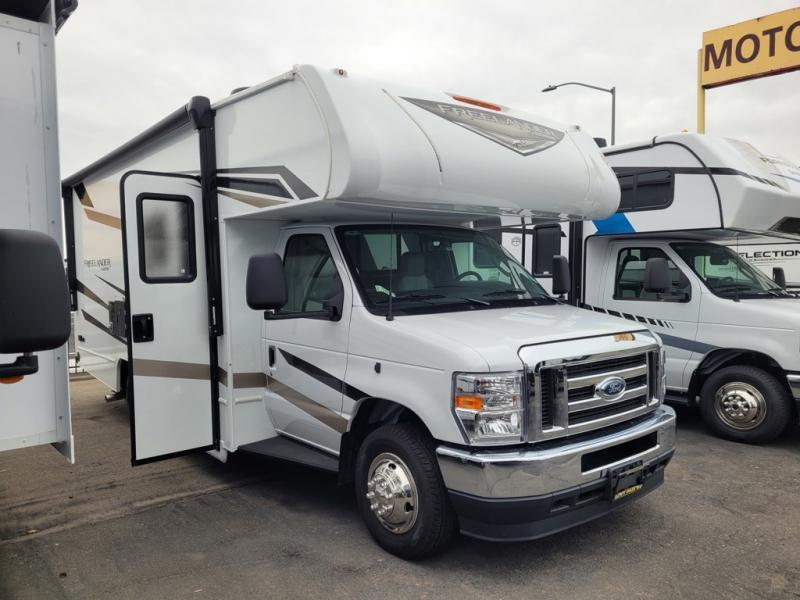 The Freelander Class C gas motorhome by Coachmen is a wonderful choice for anyone looking to get out on the road. A wide variety of floorplans and features offers something for everyone. The Azdel composite sidewalls and seamless one-piece roof membrane provide a solid structure to enjoy all your trips. Conveniences like storage above entrance door with an HDMI and charge station and reclining cockpit seats are standard, along with a rear color backup camera, a premium showerhead and faucet, and one-piece thermofoil countertops. The mandatory Explorer Package includes an exterior shower to rinse off before entering inside and an on-demand tankless water heater for hot water fast. Come find your favorite one today!