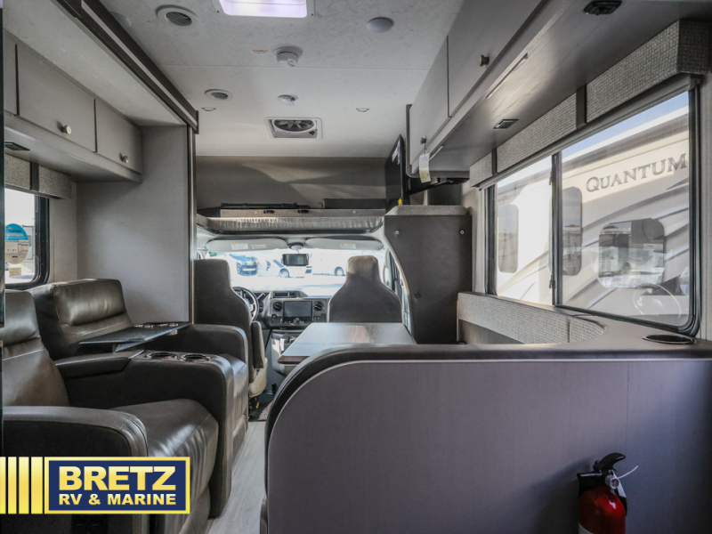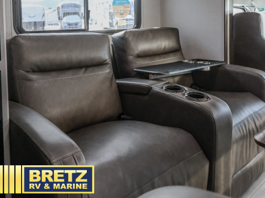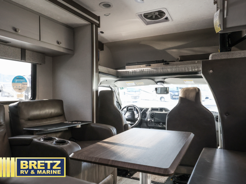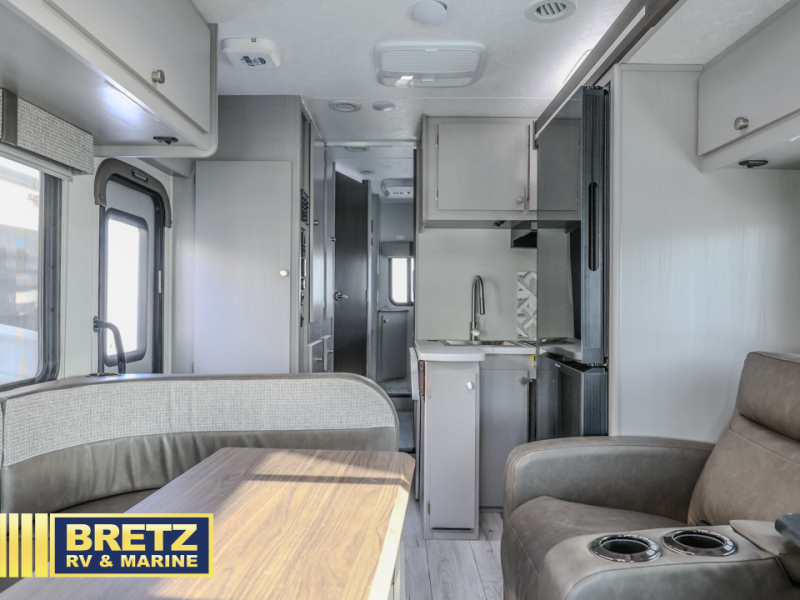 Two slide outs expand your vacation in this fun motorhome! Relax in the living area with a 62” sofa, or swap it out for optional recliners. The J-lounge dinette with an 18” extension provides another space for leisure time or gourmet meals. The kitchen layout feels spacious with two pantries and thermofoil countertops with a flip-down extension for extra prep space. In the rear, you’ll find a queen bed with overhead cabinet and dual nightstands, plus a roomy bath with shower and linen closet. Outside is an awning and you can even add on an optional outdoor kitchen table for more fun in the sun! This model also includes the CRV Supersprings Ride with heavy duty stabilizer bars, chassis electronic stability control, SumoSprings front shock absorbers, and more!