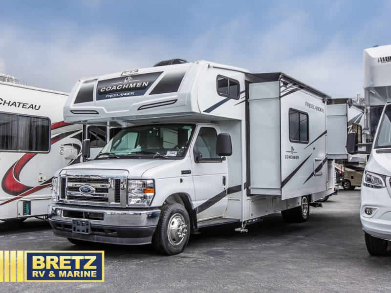 The Freelander Class C gas motorhome by Coachmen is a wonderful choice for anyone looking to get out on the road. A wide variety of floorplans and features offers something for everyone. The Azdel composite sidewalls and seamless one-piece roof membrane provide a solid structure to enjoy all your trips. Conveniences like storage above entrance door with an HDMI and charge station and reclining cockpit seats are standard, along with a rear color backup camera, a premium showerhead and faucet, and one-piece thermofoil countertops. The mandatory Explorer Package includes an exterior shower to rinse off before entering inside and an on-demand tankless water heater for hot water fast. Come find your favorite one today!