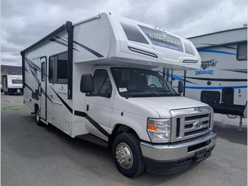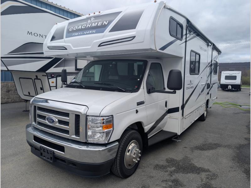 The Freelander Class C gas motorhome by Coachmen is a wonderful choice for anyone looking to get out on the road. A wide variety of floorplans and features offers something for everyone. The Azdel composite sidewalls and seamless one-piece roof membrane provide a solid structure to enjoy all your trips. Conveniences like storage above entrance door with an HDMI and charge station and reclining cockpit seats are standard, along with a rear color backup camera, a premium showerhead and faucet, and one-piece thermofoil countertops. The mandatory Explorer Package includes an exterior shower to rinse off before entering inside and an on-demand tankless water heater for hot water fast. Come find your favorite one today!