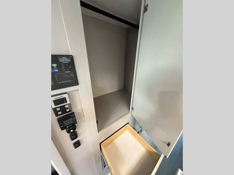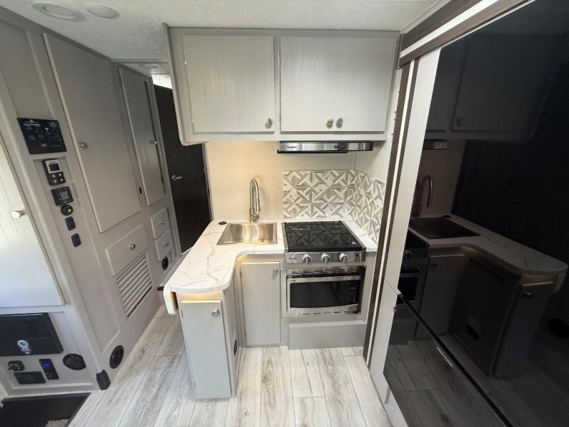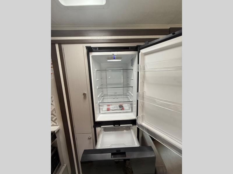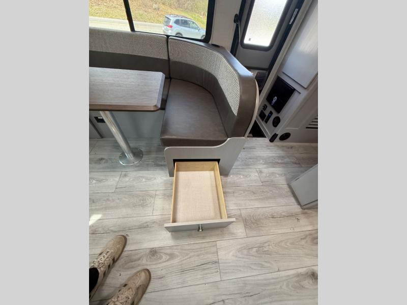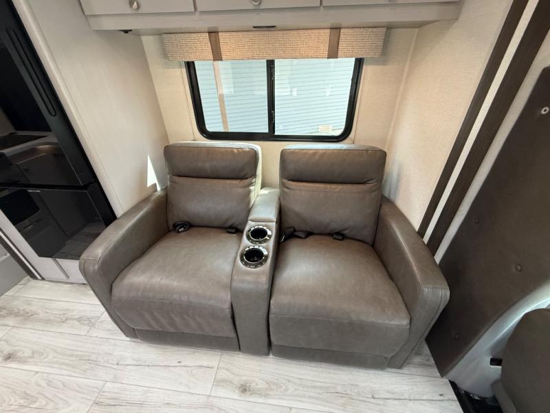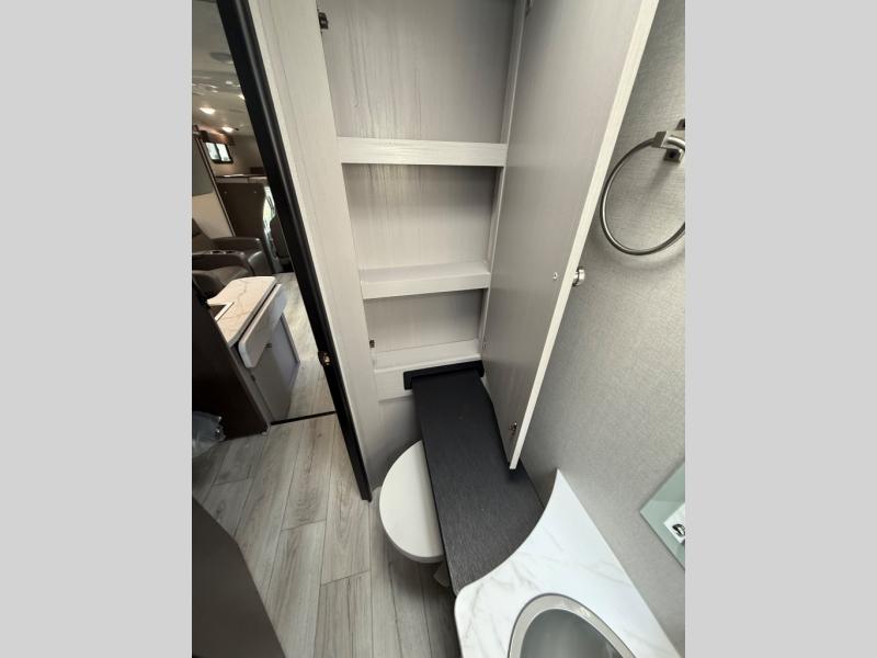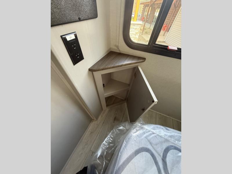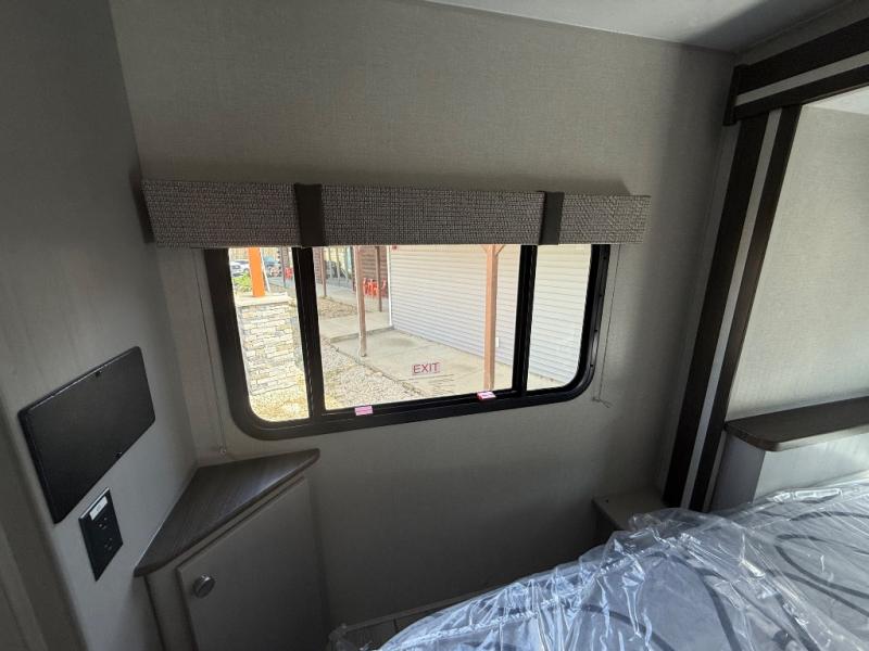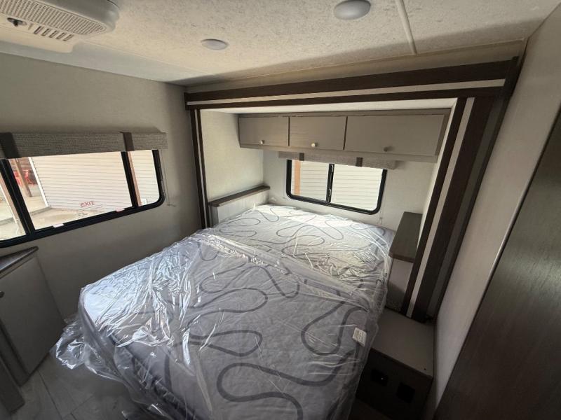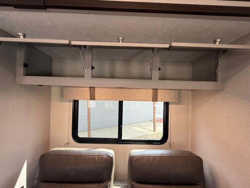 Step inside and enjoy the bright, open floorplan with residential-style finishes, a fully equipped kitchen with plenty of counter space, and a comfortable dinette perfect for meals or game nights. The walk-around queen bed in the private bedroom ensures restful nights on the road, while the overhead bunk and convertible furniture provide additional sleeping space for friends and family. With abundant storage throughout, including exterior compartments for all your gear, this coach is ready to keep you organized no matter where the road takes you.