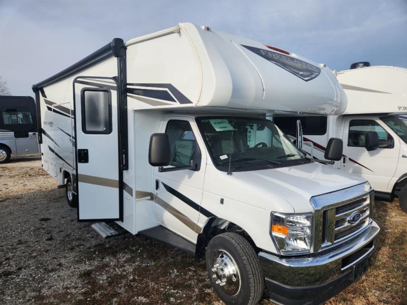 The Freelander Class C gas motorhome by Coachmen is the perfect companion for your road adventures. With a variety of floorplans and features, there's something to suit everyone's needs. Its Azdel composite sidewalls and seamless one-piece roof membrane ensure a sturdy and reliable structure for all your travels. Enjoy standard conveniences like overhead storage with HDMI and charging station, reclining cockpit seats, a rear color backup camera, a premium showerhead and faucet, and one-piece thermofoil countertops. The mandatory Explorer Package adds an exterior shower for rinsing off before heading inside and an on-demand tankless water heater for instant hot water. Discover your ideal Freelander today!