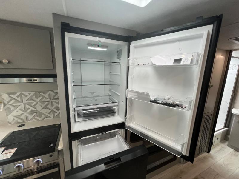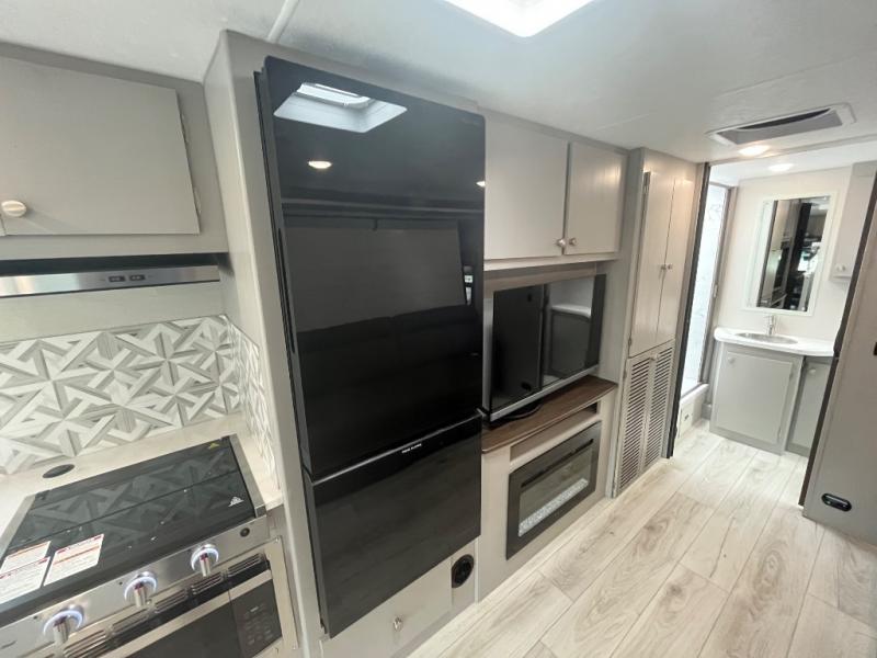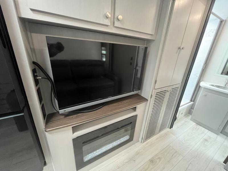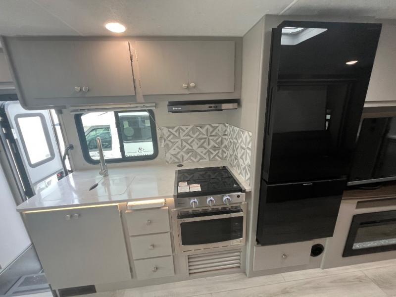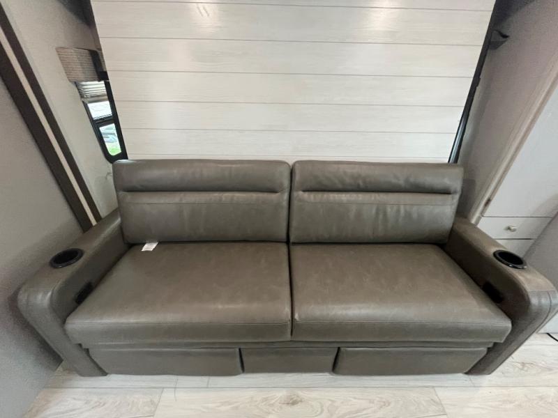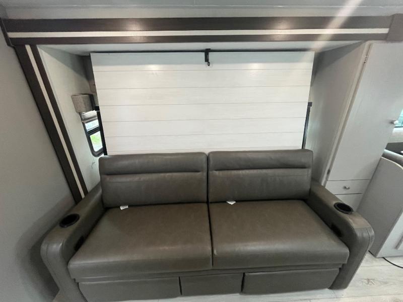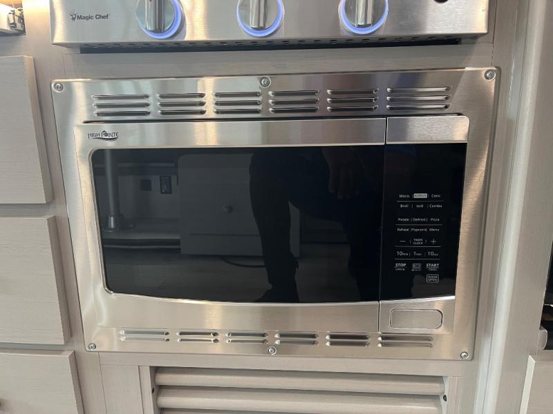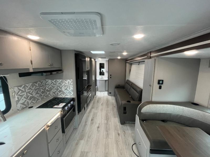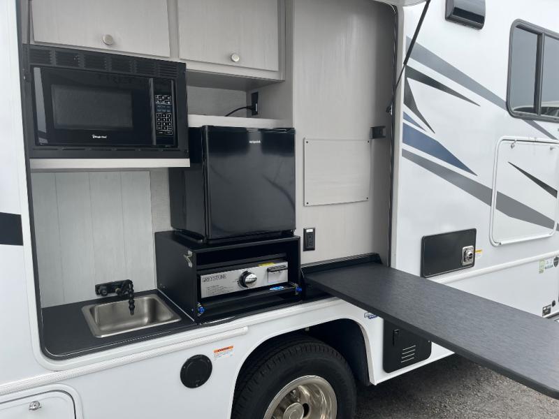 There is versatility found all throughout this motorhome! Starting with the 72" x 74" Murphy bed that offers a comfortable place to sleep and can convert into a 84" sofa to sit on during the day. Across from it is a 40" Smart TV with an optional fireplace below it plus optional washer and dryer ready. The 57" x 80" bunk over cab offers additional sleeping or storage space, and you could even transform the 44" x 82" U-shaped dinette into an extra sleeping space. The fully equipped kitchen has a pull-out countertop extension to make meal prepping easier and there is even an outside kitchen so you can cook dinner in the great outdoors!