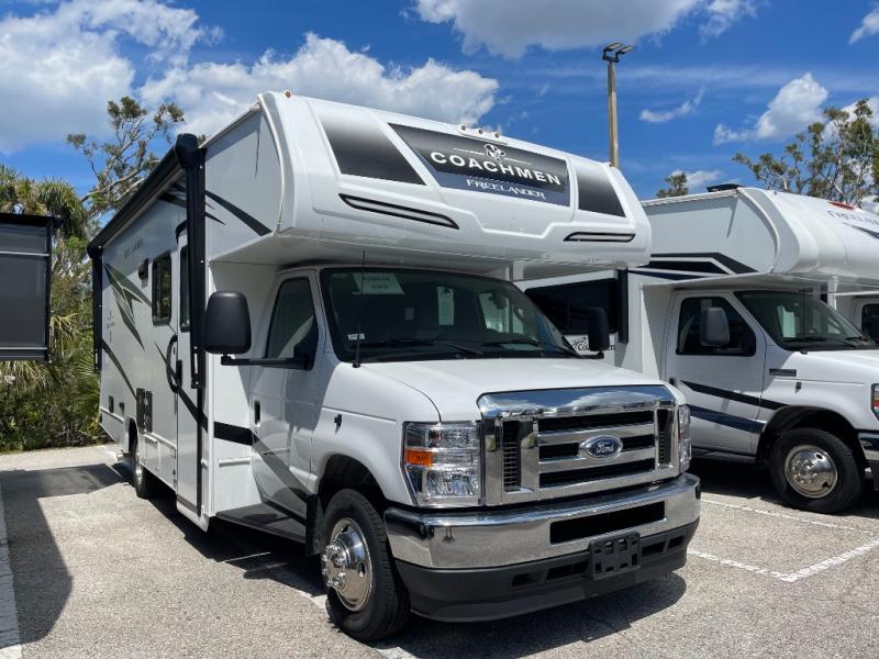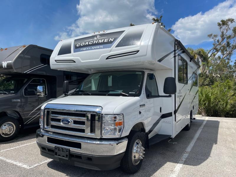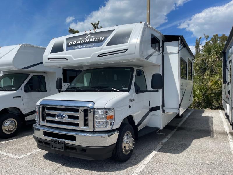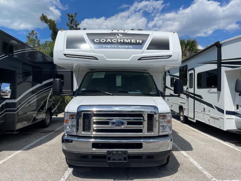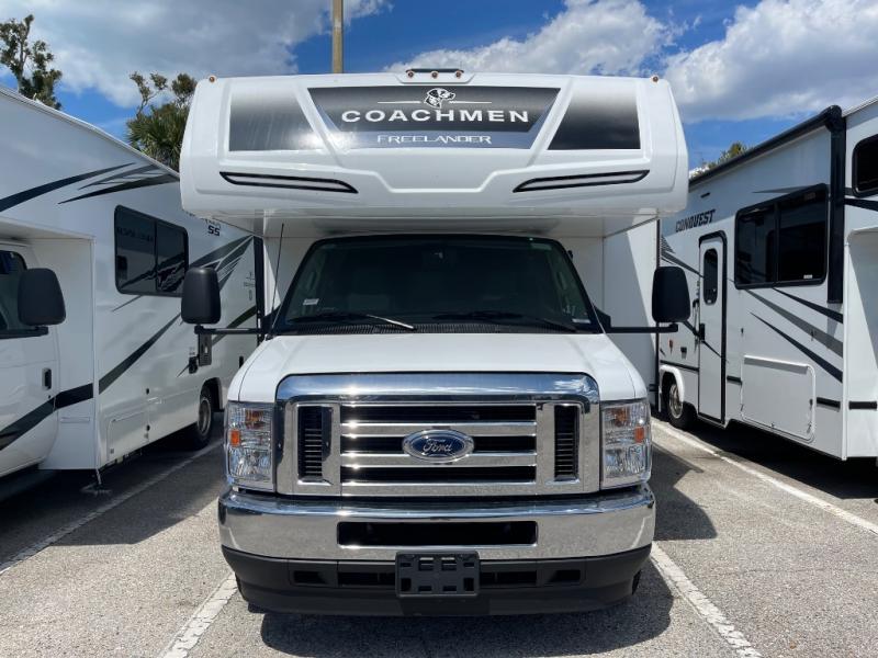 The Freelander Class C gas motorhome by Coachmen is a wonderful choice for anyone looking to get out on the road. A wide variety of floorplans and features offers something for everyone. The Azdel composite sidewalls and seamless one-piece roof membrane provide a solid structure to enjoy all your trips. Conveniences like storage above entrance door with an HDMI and charge station and reclining cockpit seats are standard, along with a rear color backup camera, a premium showerhead and faucet, and one-piece thermofoil countertops. The mandatory Explorer Package includes an exterior shower to rinse off before entering inside and an on-demand tankless water heater for hot water fast. Come find your favorite one today!