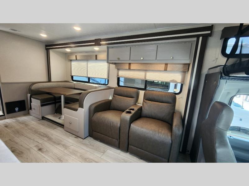 Living Area Designed for Comfort: The 31MB features a large, cozy living area with plush seating and plenty of natural light. The U-shaped dinette provides a perfect spot for family meals, and the sofa is great for relaxing after a day of exploring. Plus, with smart TV hookups and high-quality entertainment systems, you can enjoy movie nights and stay connected wherever you go.