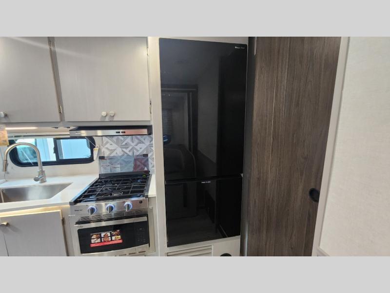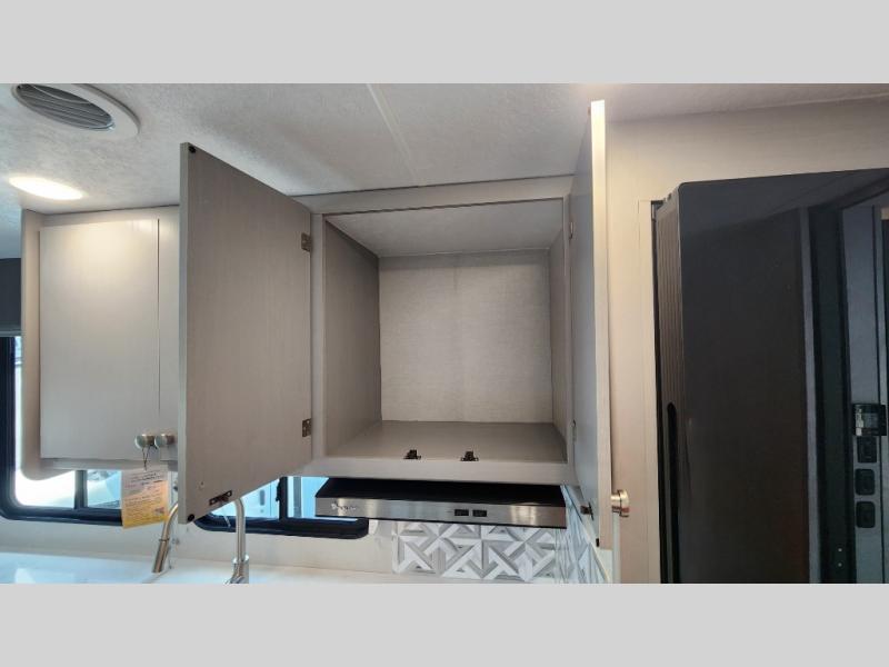 Fully Equipped Kitchen for Roadside Dining: The Coachmen Freelander 31MB ensures you can dine in style on the road. Its spacious kitchen includes a three-burner gas stove, microwave, double-door refrigerator, and sink with a high-arc faucet. Whether you're preparing a quick snack or cooking a full meal, this kitchen has everything you need. Plus, with ample storage for your cookware and ingredients, you can bring everything you need for an extended road trip.