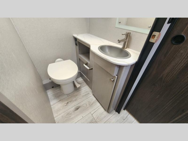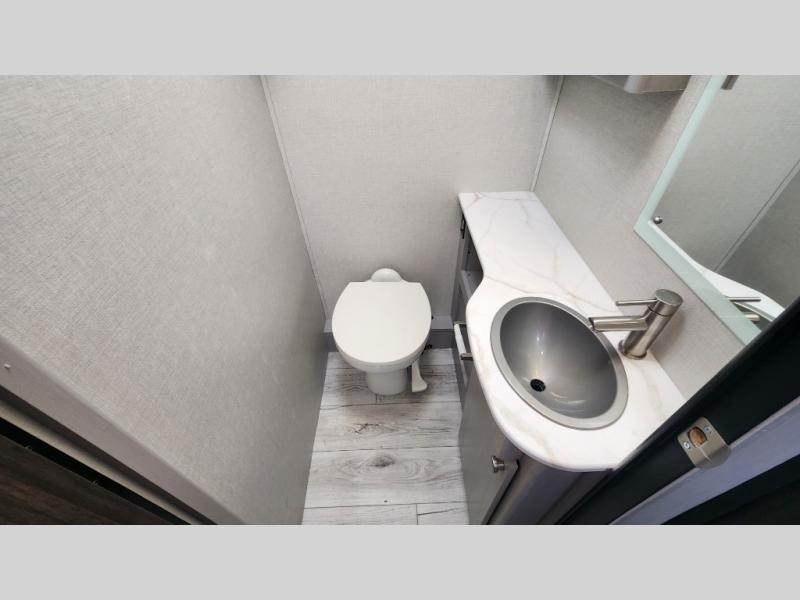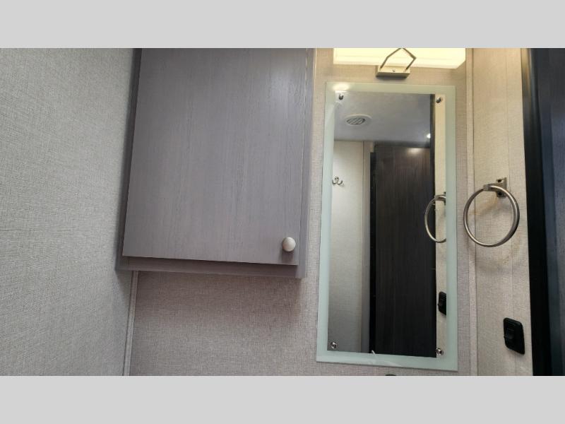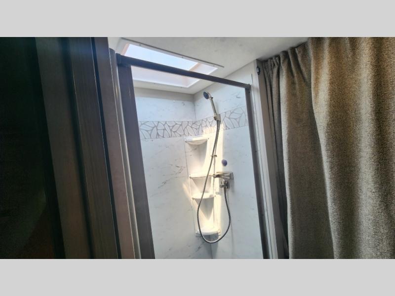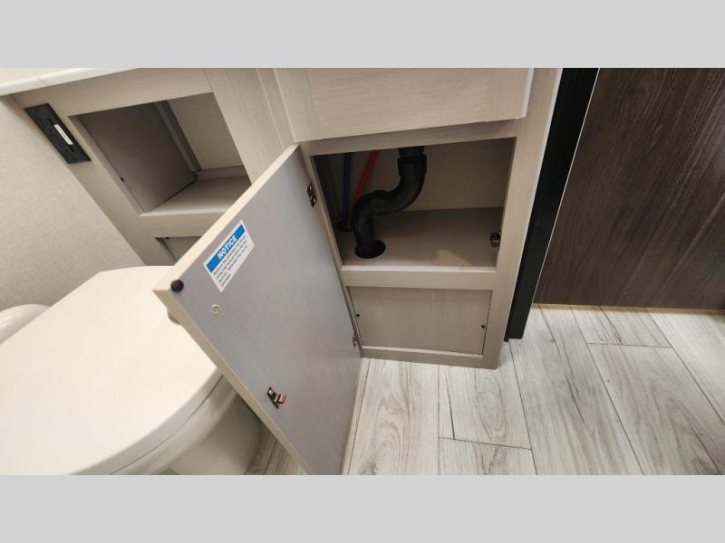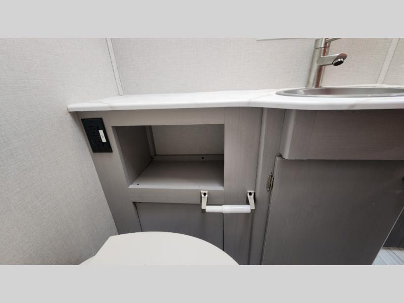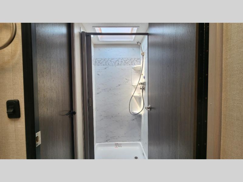 Modern Bathroom for On-the-Go Convenience: No more cramped and uncomfortable bathrooms on the road. The Coachmen Freelander 31MB comes with a spacious bathroom that includes a stand-up shower, toilet, and sink with vanity storage. After a long day on the road, you'll appreciate the convenience and comfort of a bathroom that feels like home.