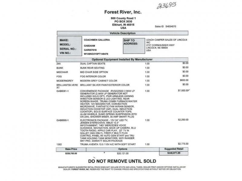 Coachmen Galleria Class B diesel motorhome 24A highlights: