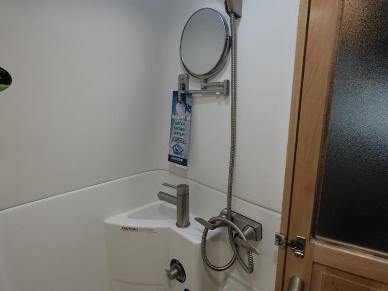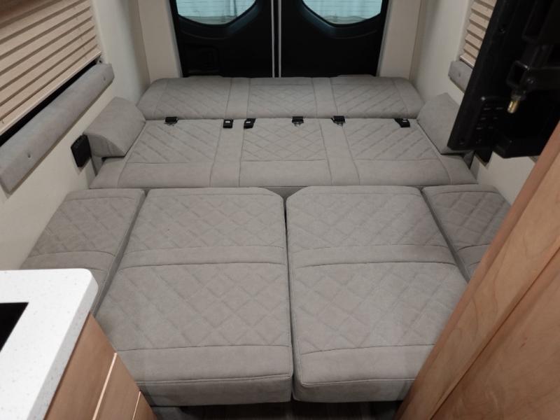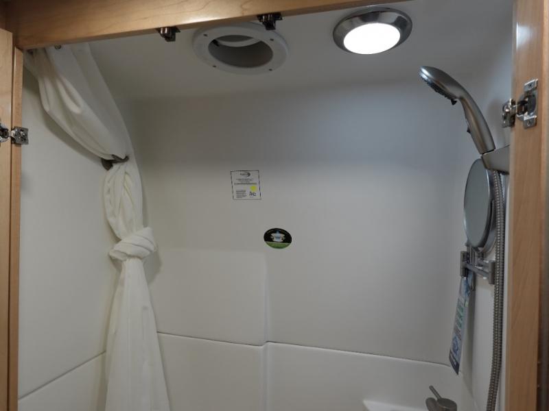Pack your bags and load up into this motorhome for a fun vacation! The motorized rear sofa lays flat at the push of a button and can be combined with the two jump seats to create a sleeping area for a good night's rest. The wardrobe provides enough hanging and drawer storage to organize your items. Start your mornings off right by grabbing some eggs from the refrigerator with pull-out freezer drawer then fry them up on the two burner cooktop. Now that your belly is full, you can get cleaned up in the wet bath with sink and shower that has an Oxygenics Fury handheld shower head with on/off switch. Stay entertained even when it's raining with the 24" LED Smart TV!
