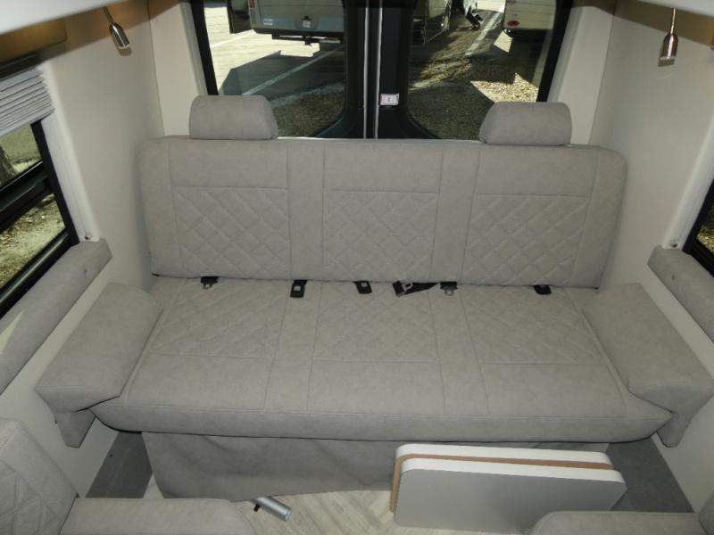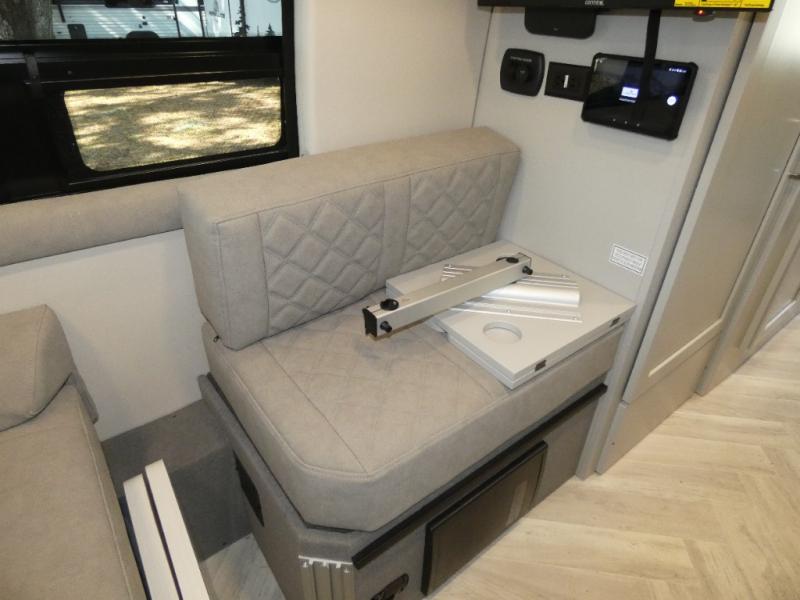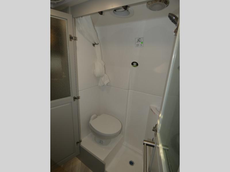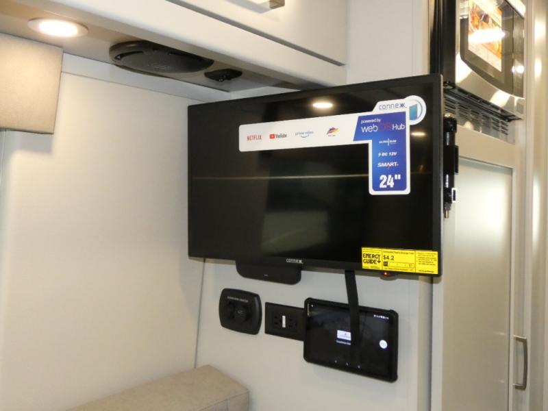 Pack your bags and load up into this motorhome for a fun vacation! The motorized rear sofa lays flat at the push of a button and can be combined with the two jump seats to create a sleeping area for a good night's rest. The wardrobe provides enough hanging and drawer storage to organize your items. Start your mornings off right by grabbing some eggs from the refrigerator with pull-out freezer drawer then fry them up on the two burner cooktop. Now that your belly is full, you can get cleaned up in the wet bath with sink and shower that has an Oxygenics Fury handheld shower head with on/off switch. Stay entertained even when it's raining with the 24" LED Smart TV!