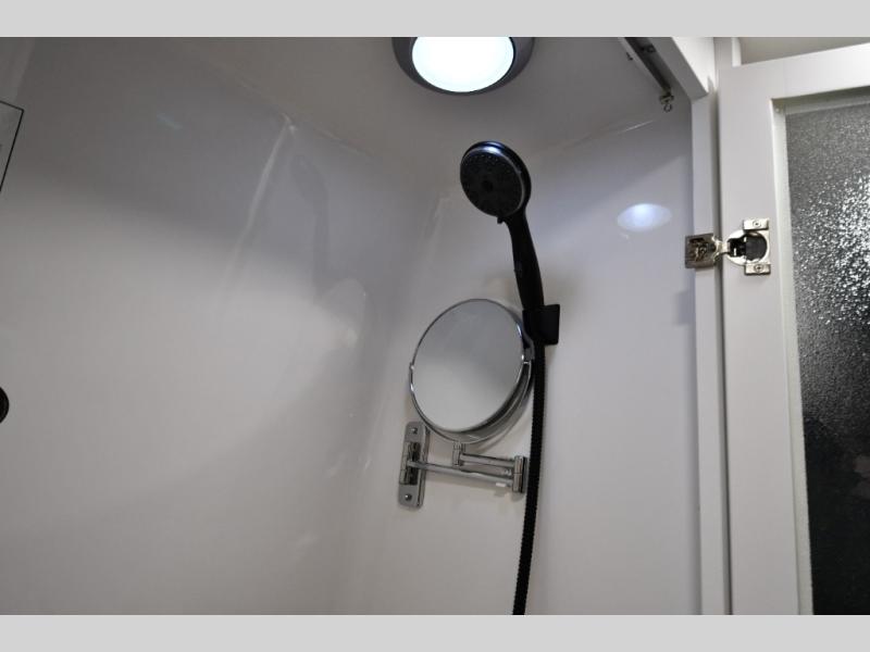 Pack your bags and load up into this motorhome for a fun vacation! The motorized rear sofa lays flat at the push of a button and can be combined with the two jump seats to create a sleeping area for a good night's rest. The wardrobe provides enough hanging and drawer storage to organize your items. Start your mornings off right by grabbing some eggs from the refrigerator with pull-out freezer drawer then fry them up on the two burner cooktop. Now that your belly is full, you can get cleaned up in the wet bath with sink and shower that has an Oxygenics Fury handheld shower head with on/off switch. Stay entertained even when it's raining with the 24" LED Smart TV! Available with optional 4x4 chassis. See dealer for details.