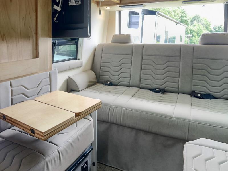 Experience all of the colors of the season with this motorhome! With four captain's chairs, everyone will have a comfortable place to sit while you travel and you could even get some work done with the removable table in between them all. The full galley has everything you need to prepare home cooked meals like a single burner cooktop and a refrigerator. Stay squeaky clean with the wet bath including a sink and shower that has an Oxygenics Fury handheld shower head with on/off switch. Above one of the jump seats there is an overhead wardrobe and a 24" LED Smart TV. The rear sofa can fold out to create a sleeping area in combination with the two jump seats so you can have a good night's rest each night! Available with optional 4x4 chassis. See dealer for details.