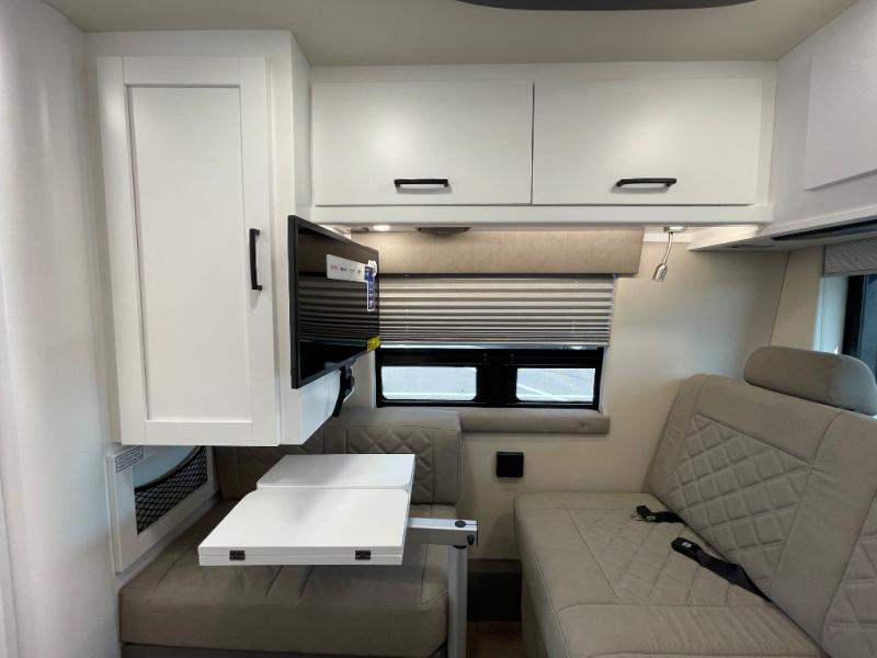 Experience all of the colors of the season with this motorhome! With four captain's chairs, everyone will have a comfortable place to sit while you travel and you could even get some work done with the removable table in between them all. The full galley has everything you need to prepare home cooked meals like a single burner cooktop and a refrigerator. Stay squeaky clean with the wet bath including a sink and shower that has an Oxygenics Fury handheld shower head with on/off switch. Above one of the jump seats there is an overhead wardrobe and a 24" LED Smart TV. The rear sofa can fold out to create a sleeping area in combination with the two jump seats so you can have a good night's rest each night! Available with optional 4x4 chassis. See dealer for details.