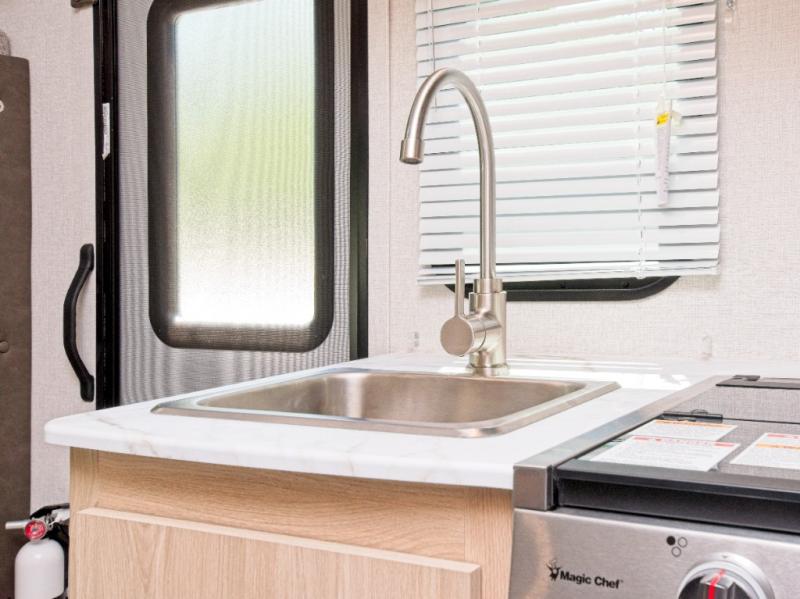 The single-slide floorplan maximizes interior space, providing a comfortable and open living area without adding extra length. Whether you're cooking, relaxing, or entertaining, this smart layout ensures you have everything you need.