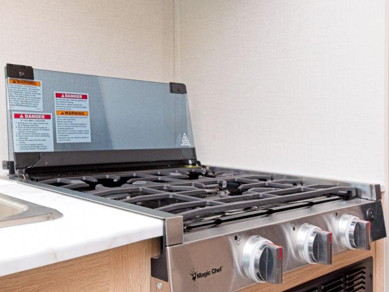 Three-burner cooktop with oven – Prepare everything from quick breakfasts to full dinners.