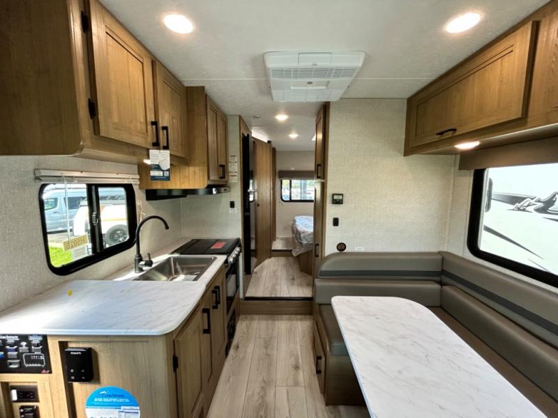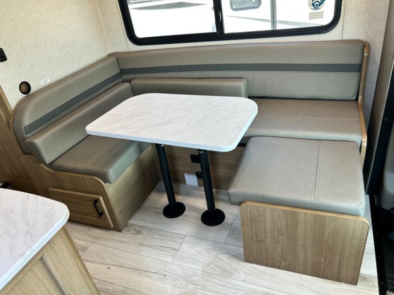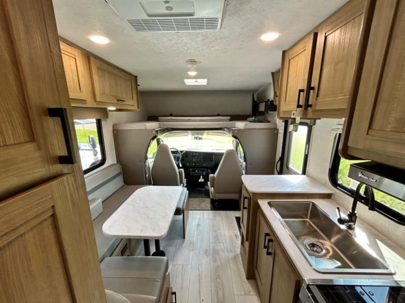 With each Leprechaun Class C gas motorhome by Coachmen you will enjoy "better" interior appointments, like the residential-sized beds, on-demand tankless water heater, and 15,000 BTU A/C. A 7" touchscreen dash radio with CarPlay and a backup monitor will let you easily navigate the open road like pro. The Leprechaun is constructed with composite sidewall and cabover floor construction plus a seamless one-piece roof material for a durable motorhome made to last.