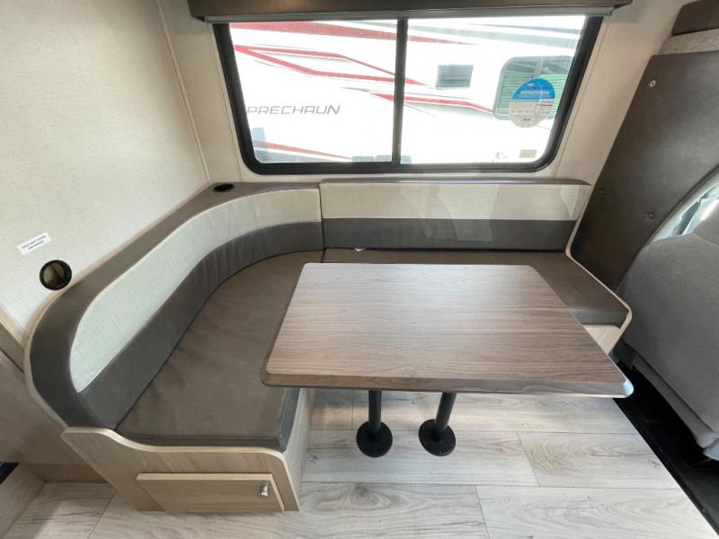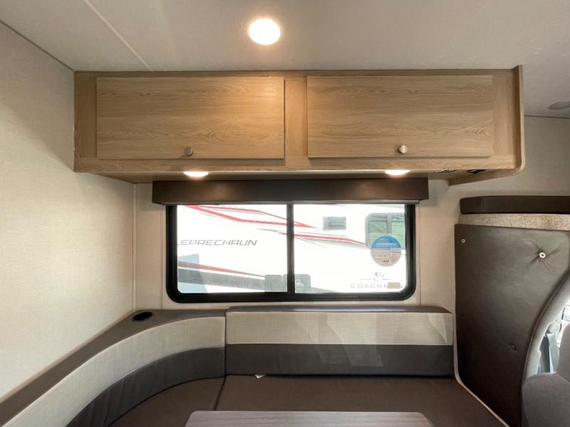With each Leprechaun Class C gas motorhome by Coachmen you will enjoy "better" interior appointments, like the residential-sized beds, on-demand tankless water heater, and 15,000 BTU A/C. A 7" touchscreen dash radio with CarPlay and a backup monitor will let you easily navigate the open road like pro. The Leprechaun is constructed with composite sidewall and cabover floor construction plus a seamless one-piece roof material for a durable motorhome made to last.