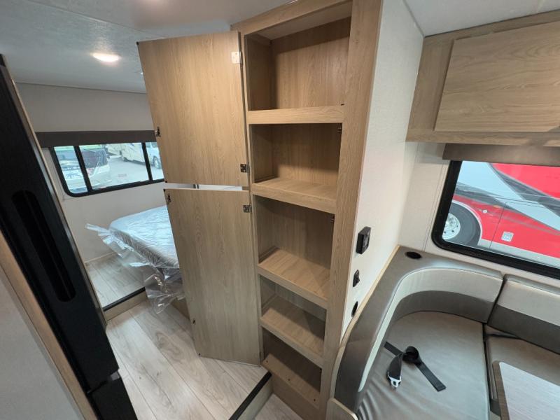With each Leprechaun Class C gas motorhome by Coachmen you will enjoy "better" interior appointments, like the residential-sized beds, on-demand tankless water heater, and 15,000 BTU A/C. A 7" touchscreen dash radio with CarPlay and a backup monitor will let you easily navigate the open road like pro. The Leprechaun is constructed with composite sidewall and cabover floor construction plus a seamless one-piece roof material for a durable motorhome made to last.