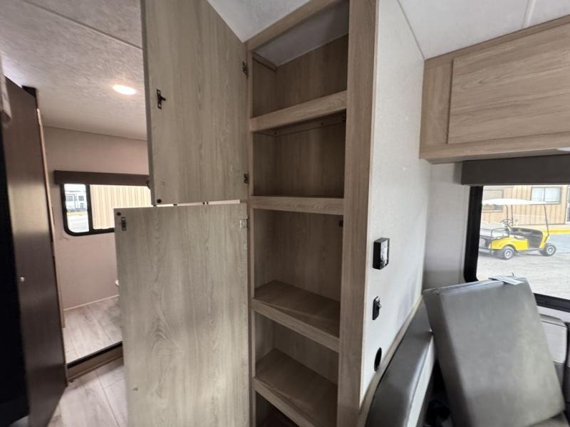 With each Leprechaun Class C gas motorhome by Coachmen you will enjoy "better" interior appointments, like the residential-sized beds, on-demand tankless water heater, and 15,000 BTU A/C. A dash radio and a backup monitor will let you easily navigate the open road like pro. There are also pleated night shades inside, along with premium vinyl flooring, a shower skylight, and USB charging ports to name a few comforts and conveniences. The Leprechaun is constructed with composite sidewall and cabover floor construction plus a seamless one-piece roof material for a durable motorhome made to last.