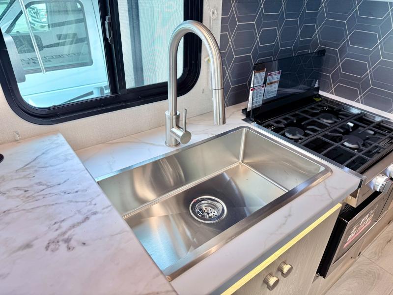 With each Leprechaun Class C gas motorhome by Coachmen you will enjoy "better" interior appointments, like the residential-sized beds, on-demand tankless water heater, and 15,000 BTU A/C. A 7" touchscreen dash radio with CarPlay and a backup monitor will let you easily navigate the open road like pro. The Leprechaun is constructed with composite sidewall and cabover floor construction plus a seamless one-piece roof material for a durable motorhome made to last.
