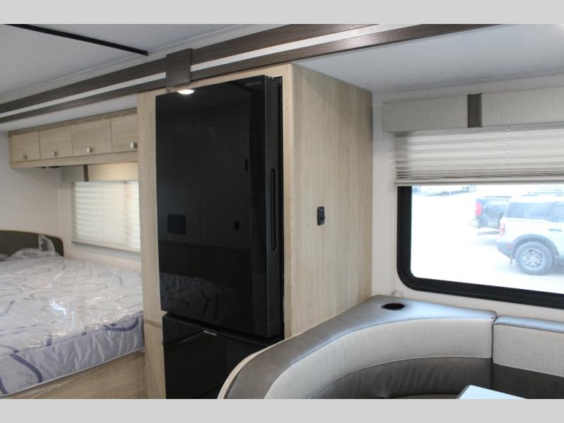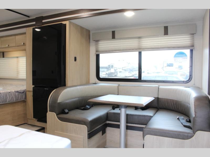 With each Leprechaun Class C gas motorhome by Coachmen you will enjoy "better" interior appointments, like the residential-sized beds, on-demand tankless water heater, and 15,000 BTU A/C. A dash radio and a backup monitor will let you easily navigate the open road like pro. There are also pleated night shades inside, along with premium vinyl flooring, a shower skylight, and USB charging ports to name a few comforts and conveniences. The Leprechaun is constructed with composite sidewall and cabover floor construction plus a seamless one-piece roof material for a durable motorhome made to last.