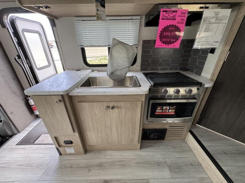 With each Leprechaun Class C gas motorhome by Coachmen you will enjoy "better" interior appointments, like the residential-sized beds, on-demand tankless water heater, and 15,000 BTU A/C. A dash radio and a backup monitor will let you easily navigate the open road like pro. There are also pleated night shades inside, along with premium vinyl flooring, a shower skylight, and USB charging ports to name a few comforts and conveniences. The Leprechaun is constructed with composite sidewall and cabover floor construction plus a seamless one-piece roof material for a durable motorhome made to last.