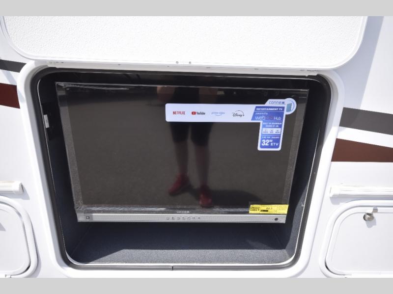 The two slides create even more space inside, and the swing-arm TV adds a fun touch for entertainment – perfect for winding down after an action-packed day!
