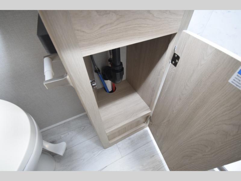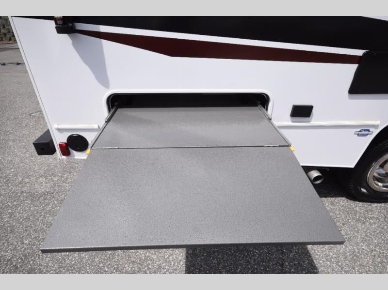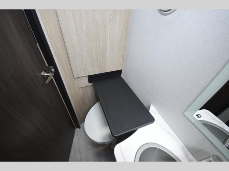 Inside the Leprechaun 260DS, you’ll find plenty of space and all the amenities you need. The flip-down extension in the kitchen makes meal prep even easier, and the J-lounge with an 18" extension offers a cozy spot to gather, eat, or just enjoy the company of friends and family. The full bathroom ensures you can stay fresh and clean while on the road.